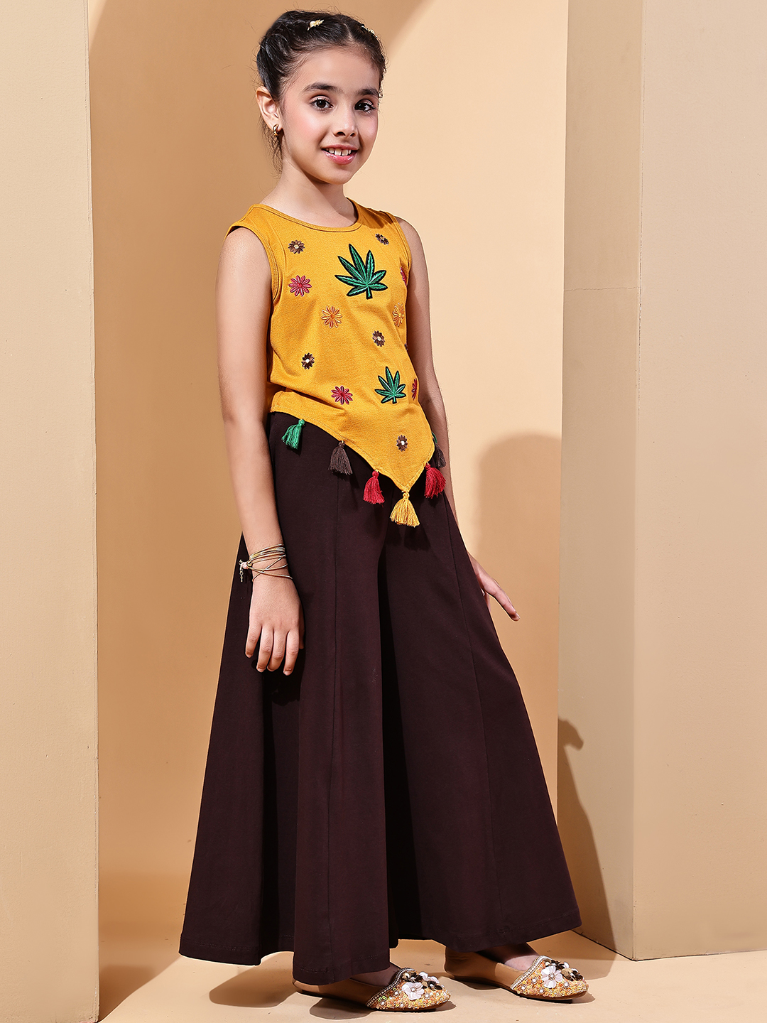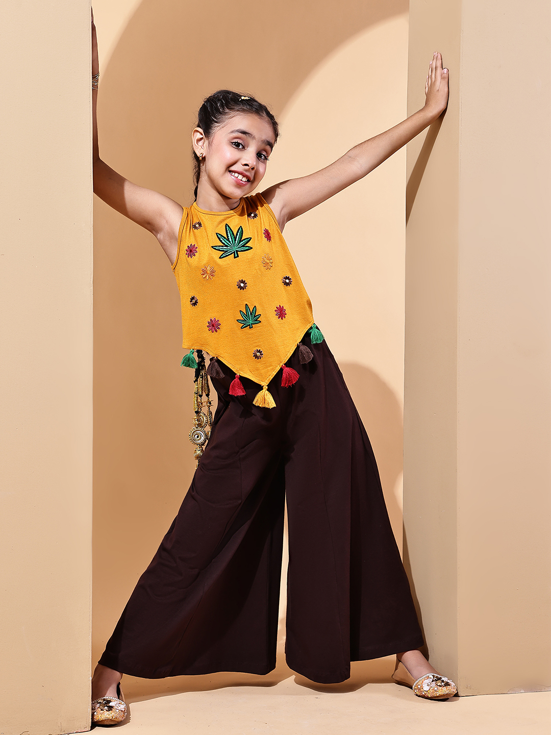BaawRi Trendy Girls Cotton Lycra Festive Set with Embroidered Top & Flared Pants