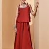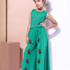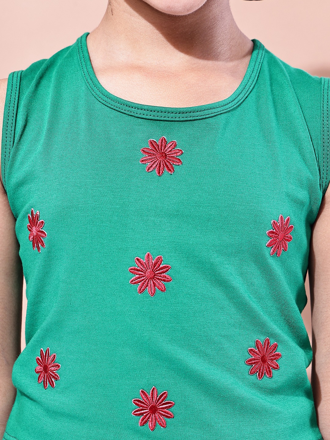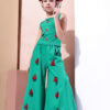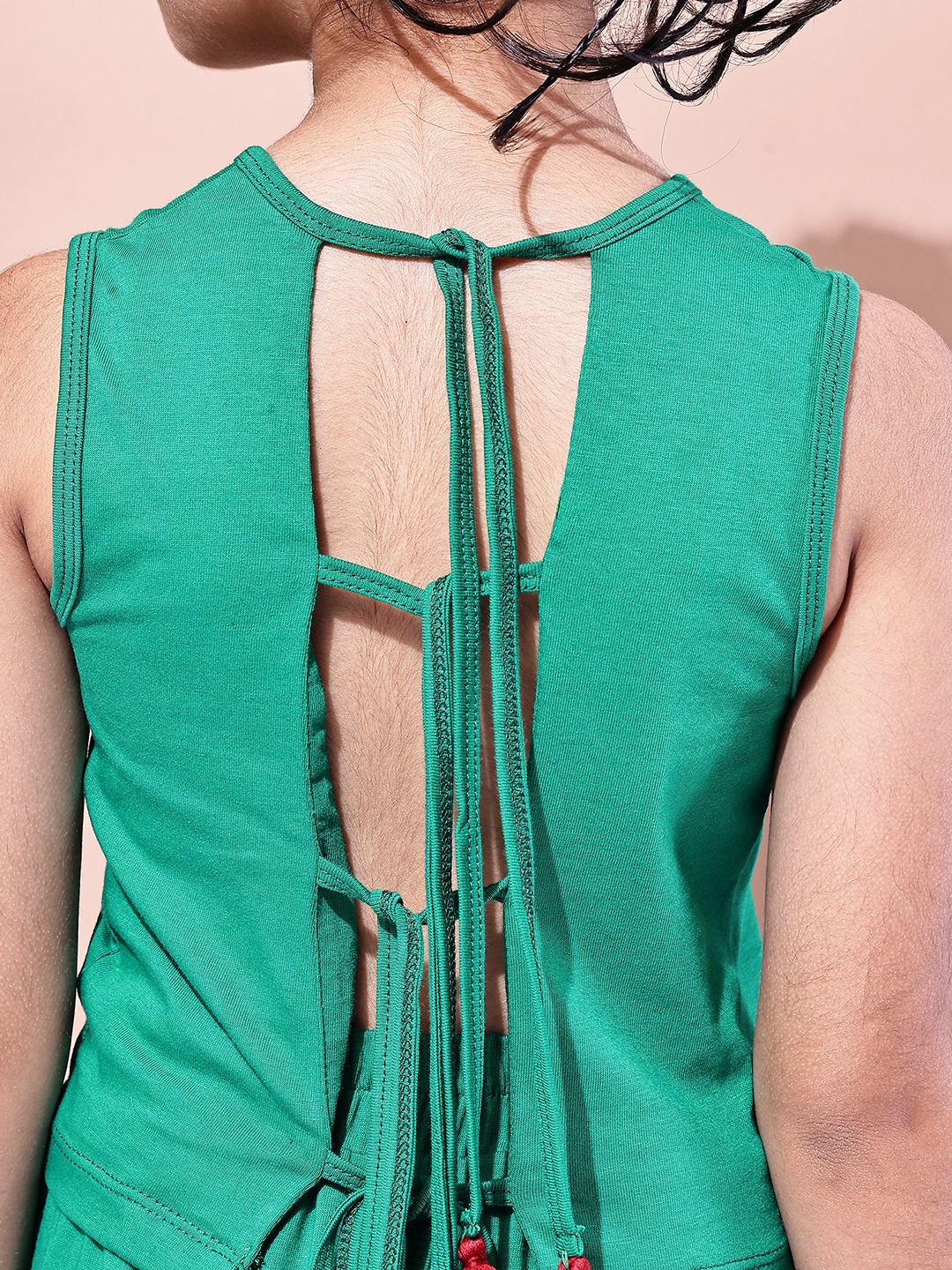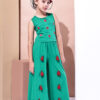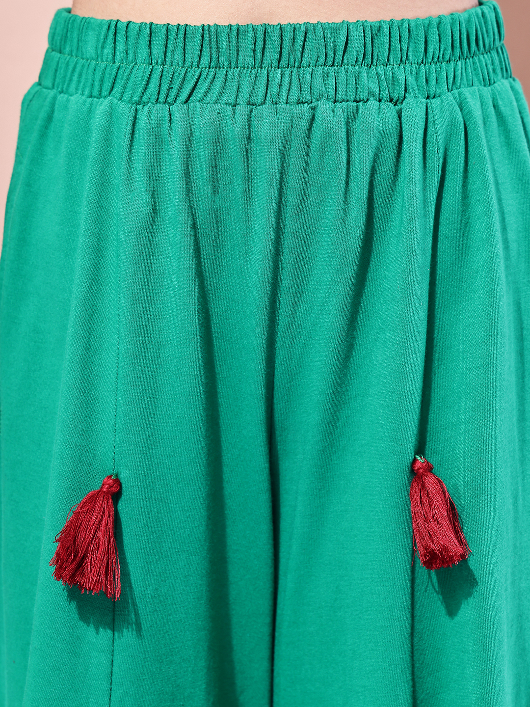 Girls Forest Green Cotton Plazo Set with Embroidered Top, Tassel Accents & Mesh Detailing – Festive & Ethnic Wear for Girls