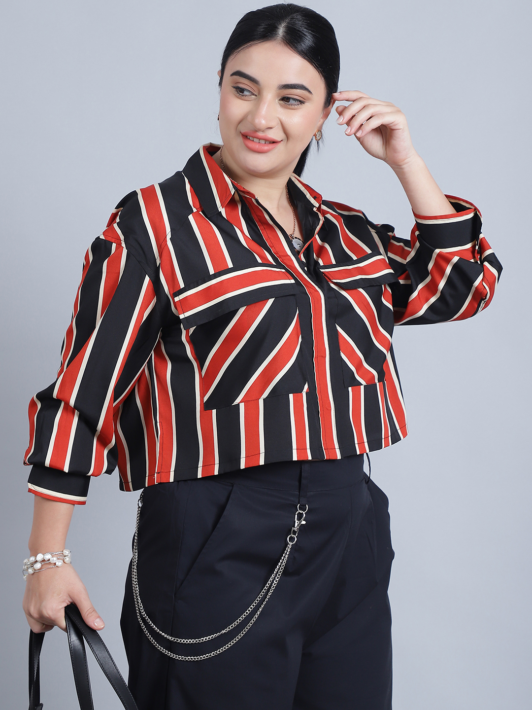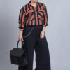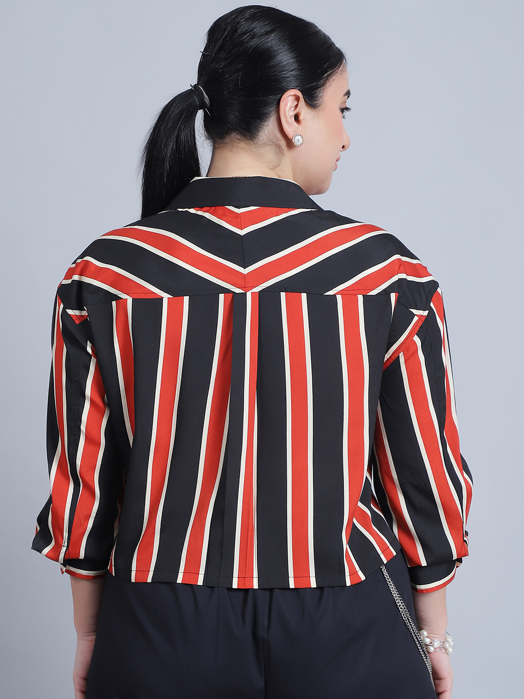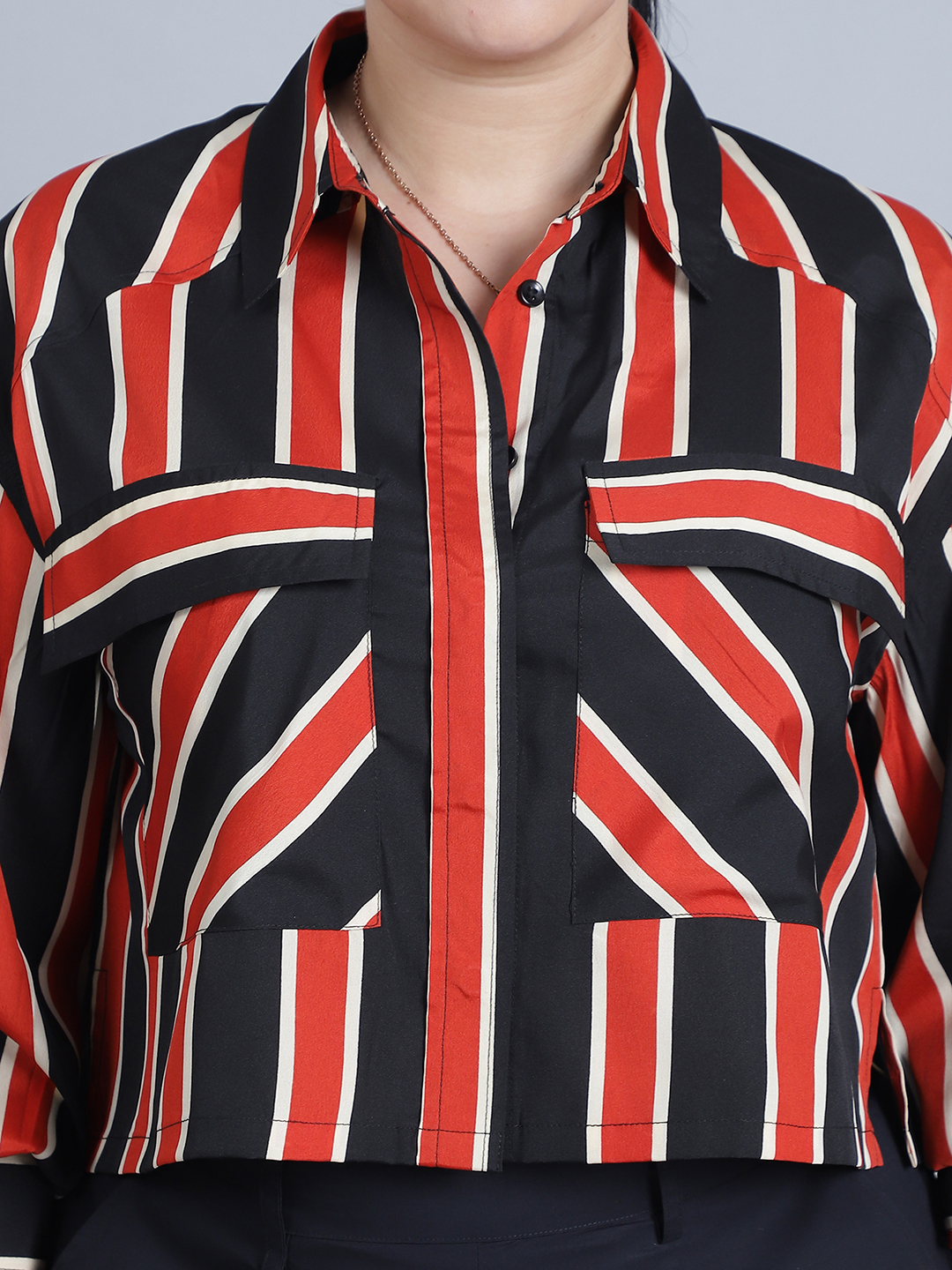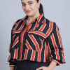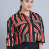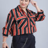 Women’s Collar, Full Sleeves & Front Open Stripe Printed Short Top