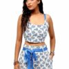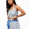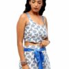BaawRi Blue and White flower Print Cotton Top, has a Round neck, Sleeve less, Short Top.