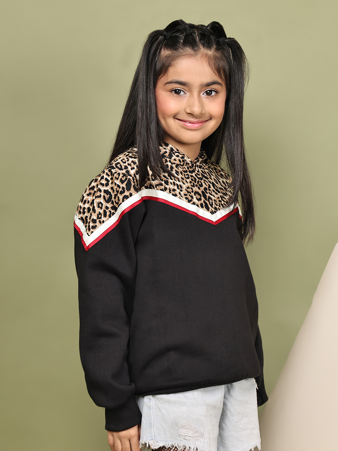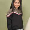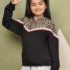 BaawRi Girl Black Fleece Hoodie Sweatshirt with Animal Print & Tape Detailing | Soft Warm Winter Wear for Girls | Cozy Stylish Pullover Hoodie for School & Outings