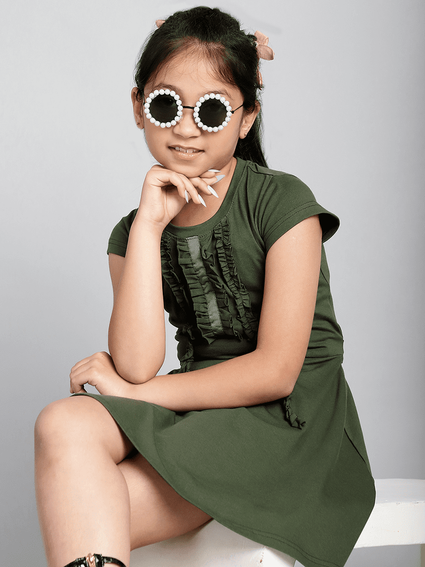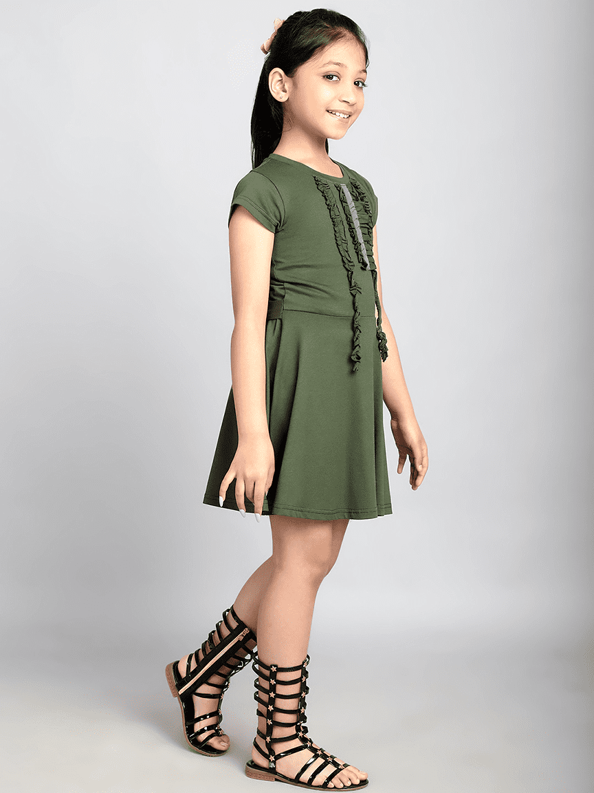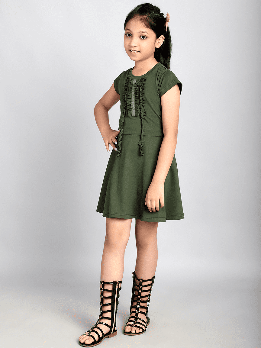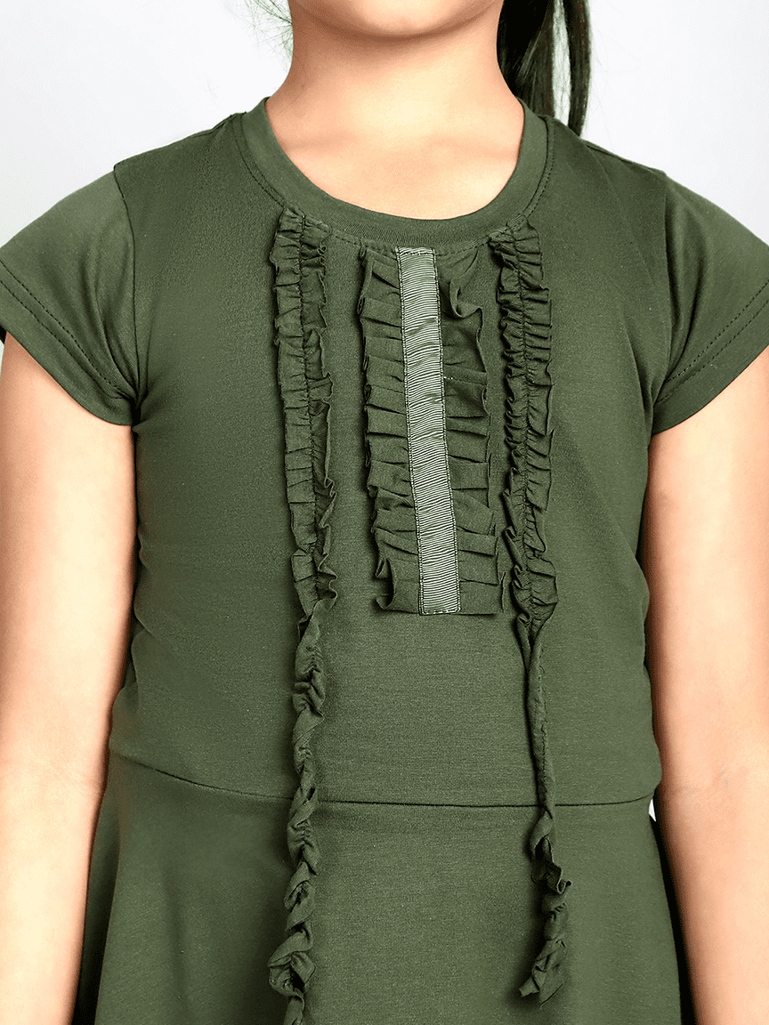 Baawri Girl Cotton Jersey Olive Color Dress