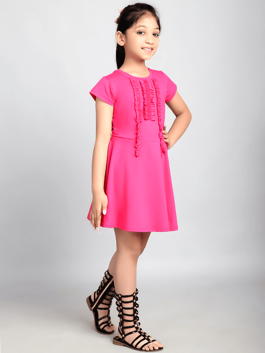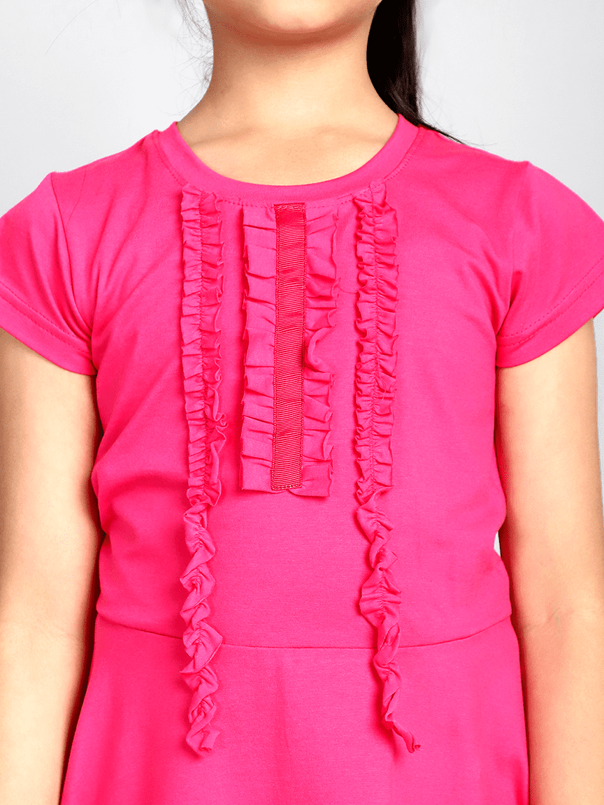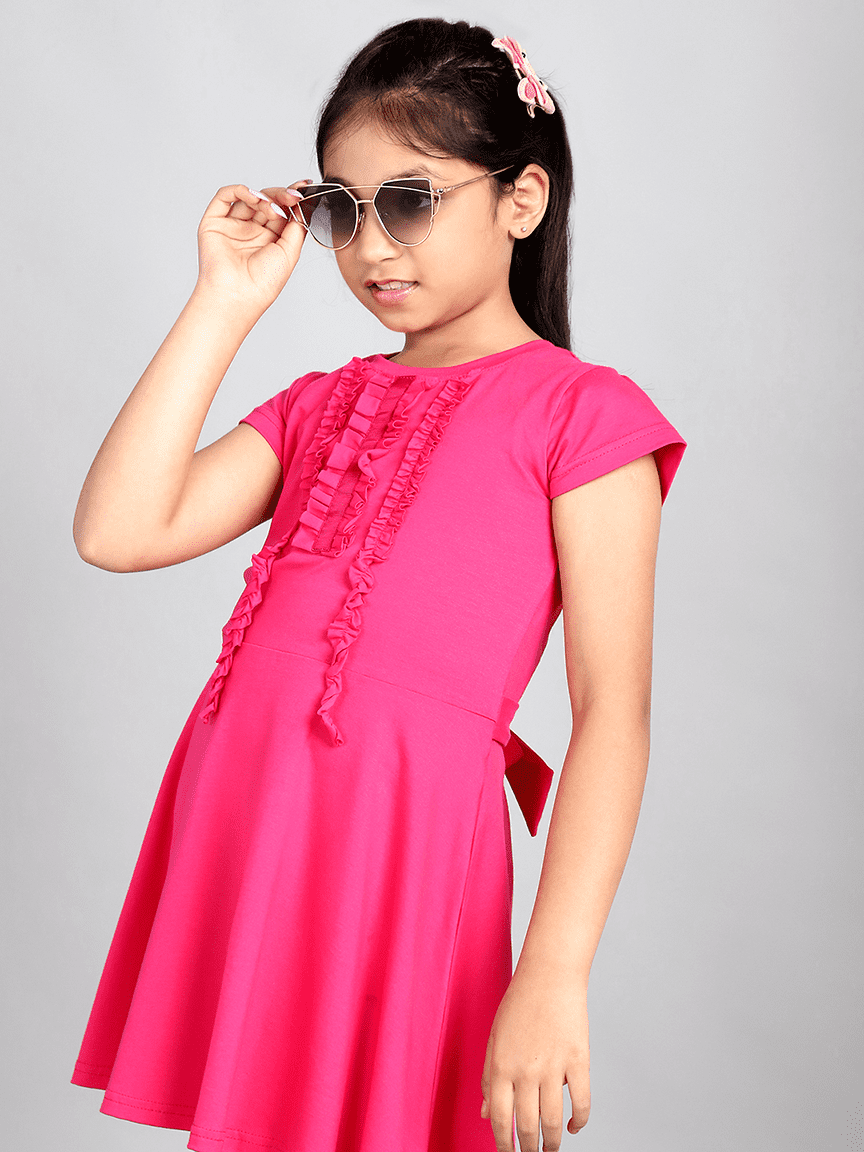 Raw Cut Ruffles: Frontal raw cut gathered-on vertical ruffles add a touch of whimsy and texture, creating a unique visual appeal.