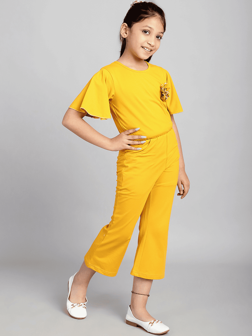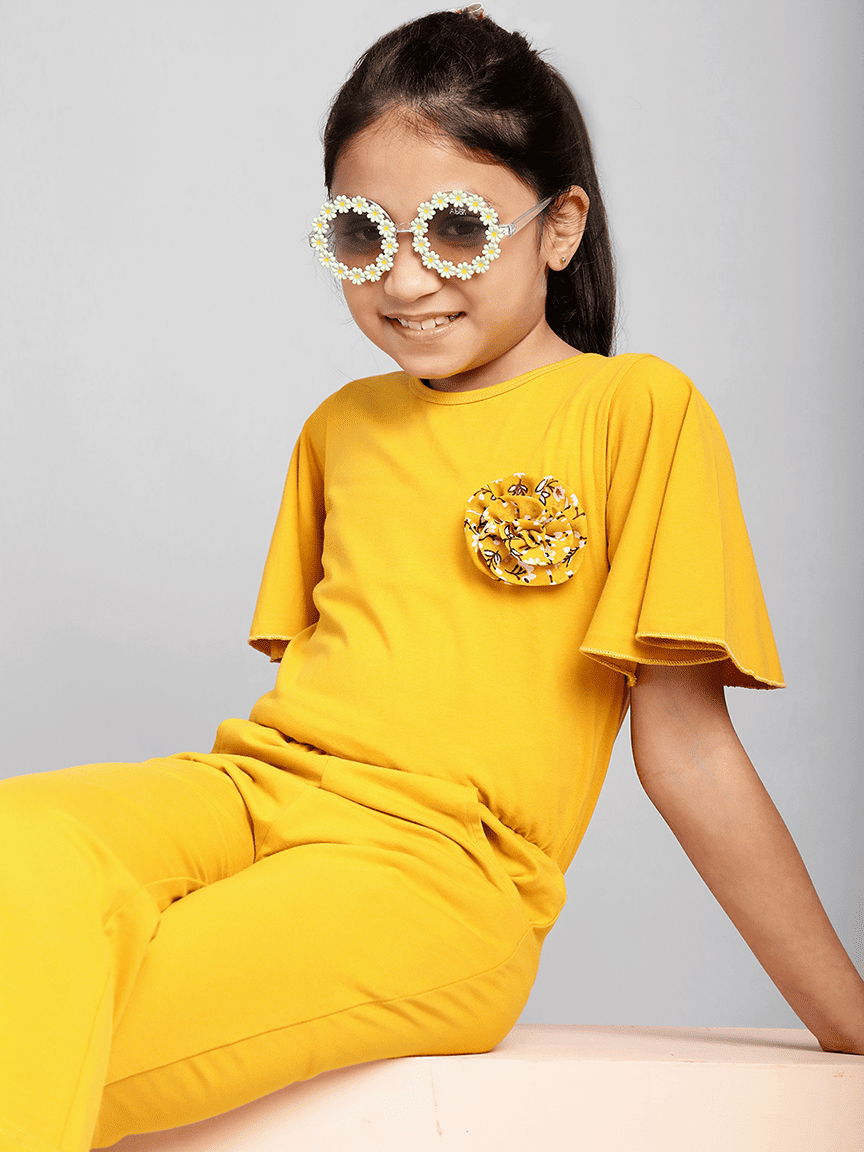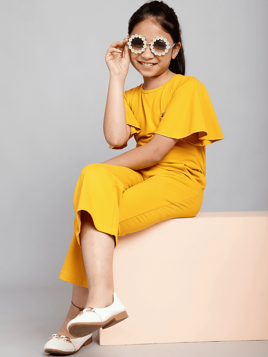 Baawri Girl Cotton Jersey Yellow Color Jumpsuit