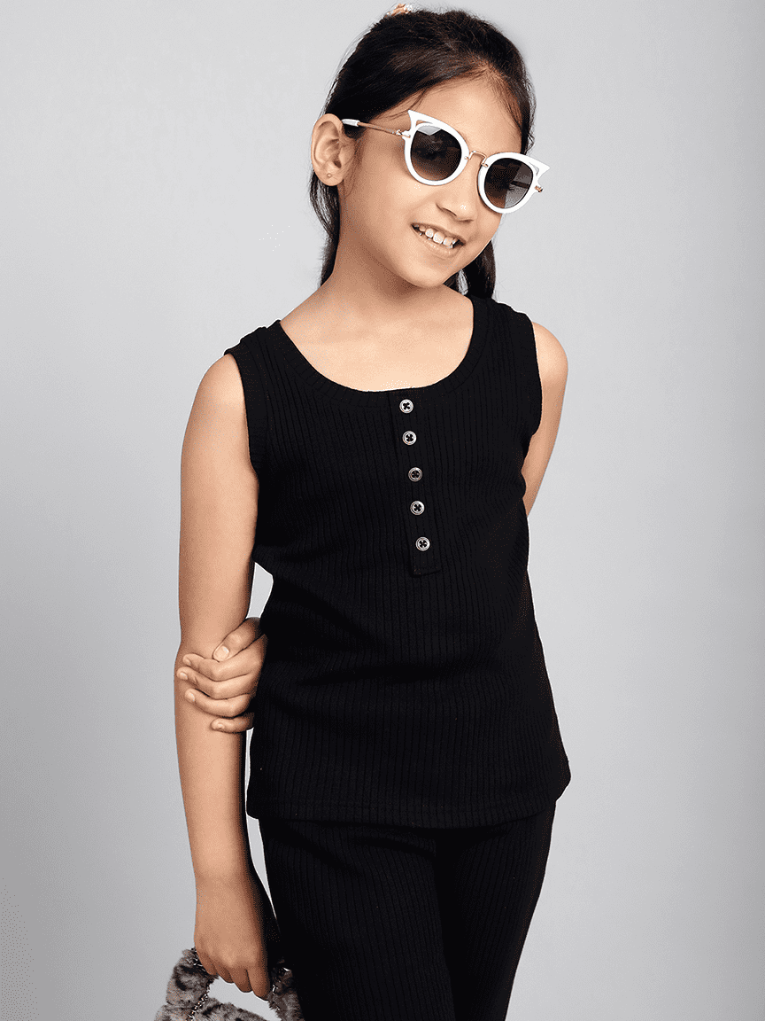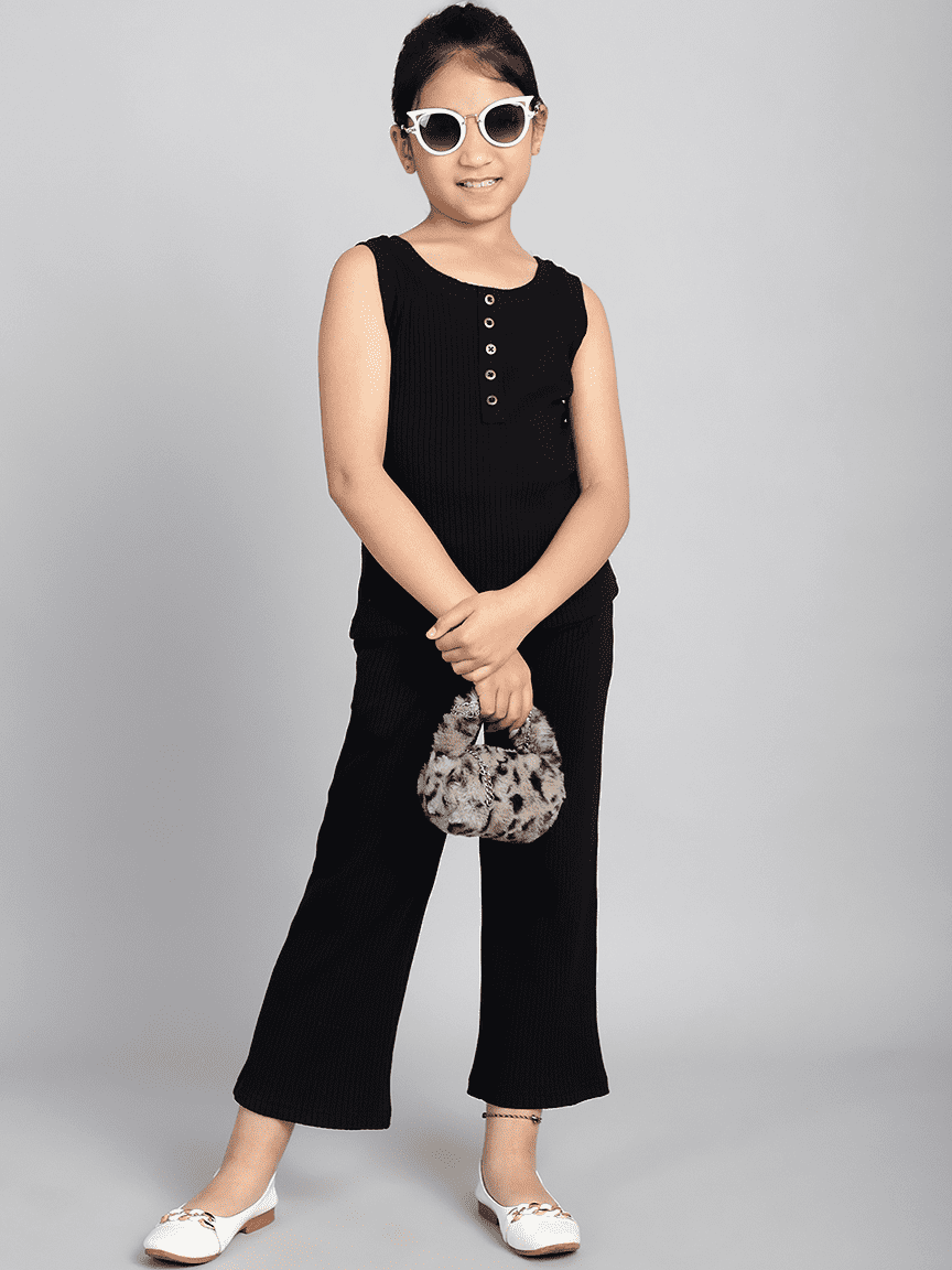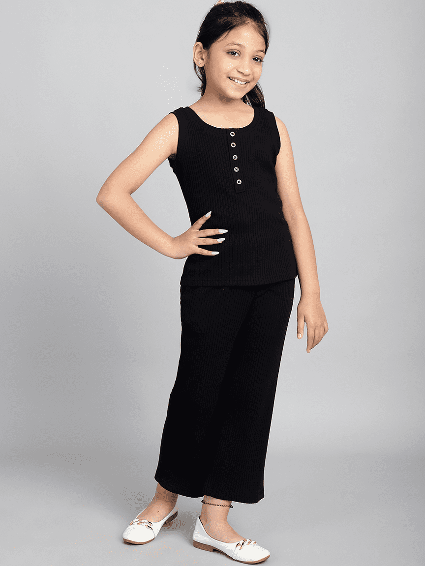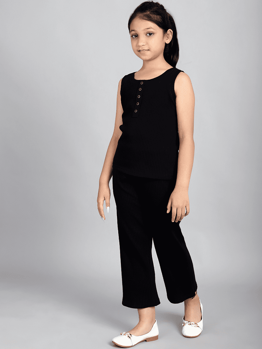 Baawri Girl Cotton Rib Black Color 2 Pcs Cord Set