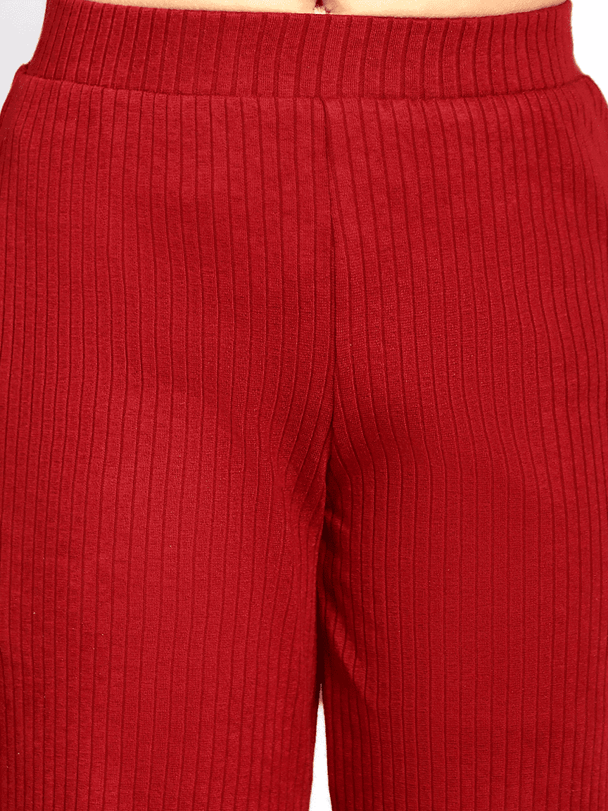Straight-Fit Pajama: The straight-fit pajama completes the set, offering a timeless silhouette that ensures both comfort and a chic loungewear look.