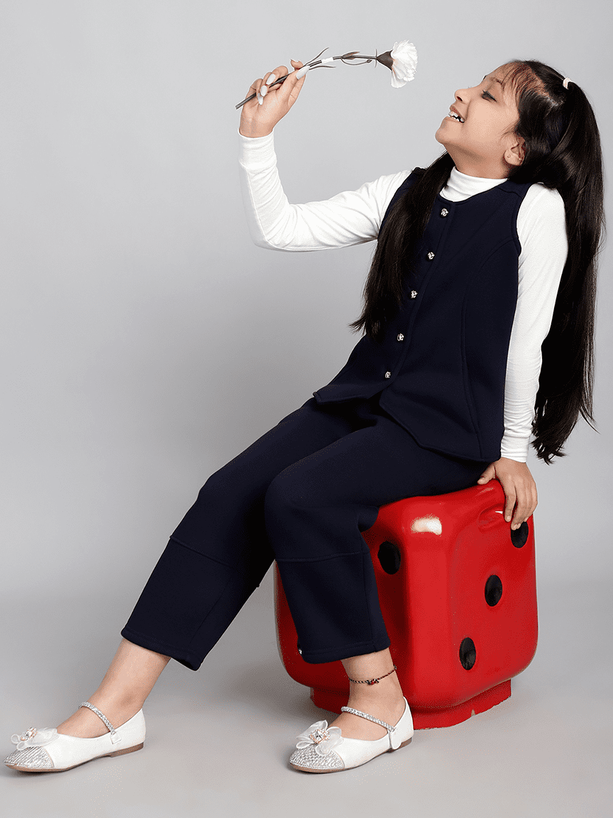 Baawri Girl Cozy Soft Fleece Navy Blue Color 2 Pcs Cord Set