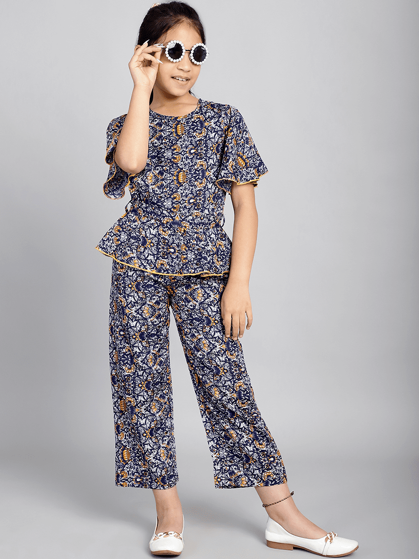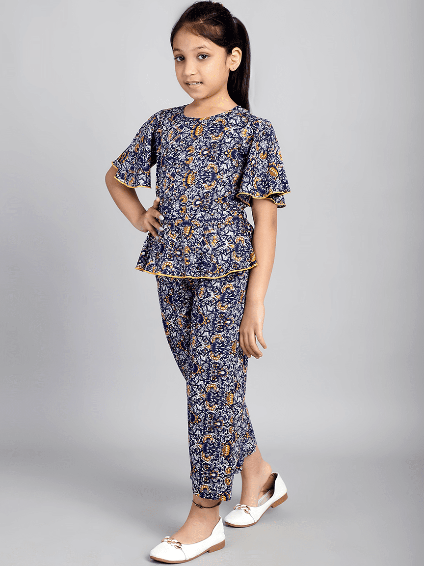 Baawri Girl Crepe Blue Printed Color 2 Pcs Cord Set