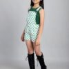 Color: The color of the set is green, suggesting a shade of green throughout both the dungaree shorts and the top.
