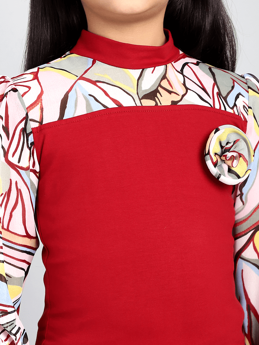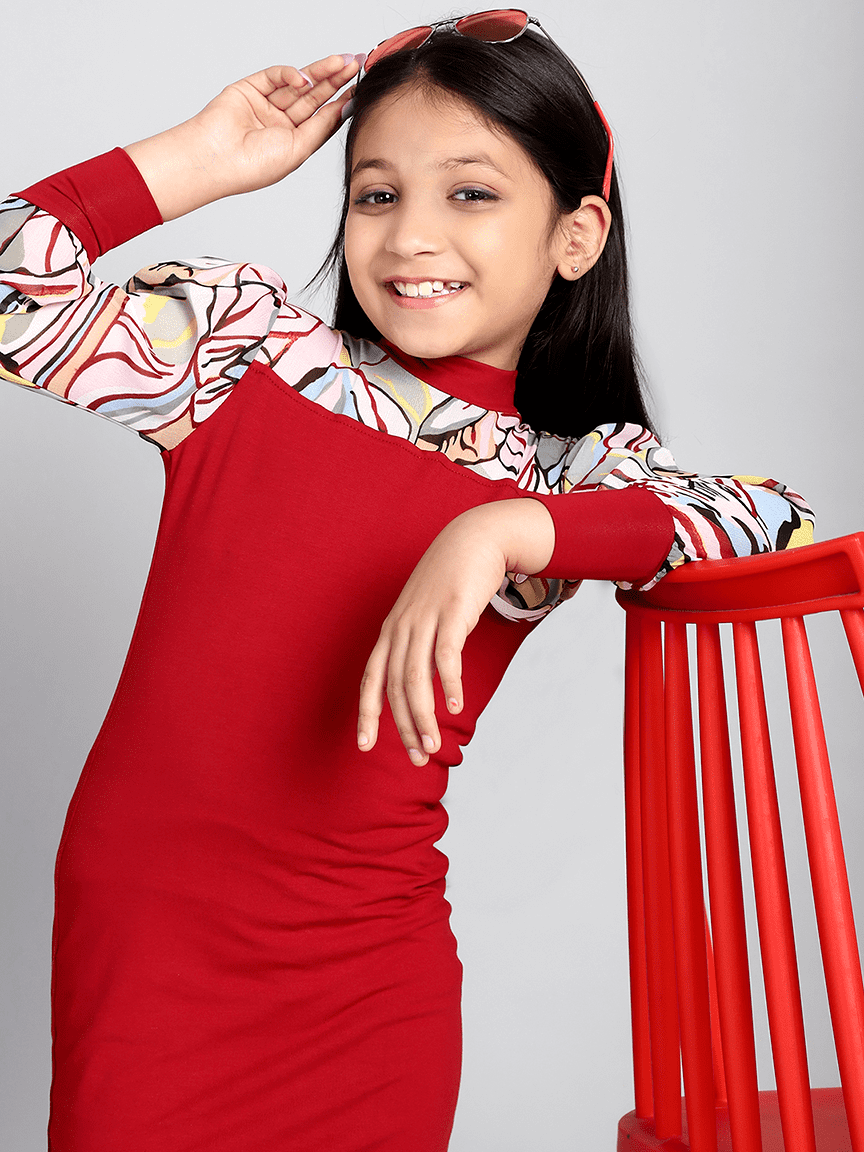 Baawri Girl Maroon Color Long Sleeve Round Dress