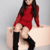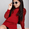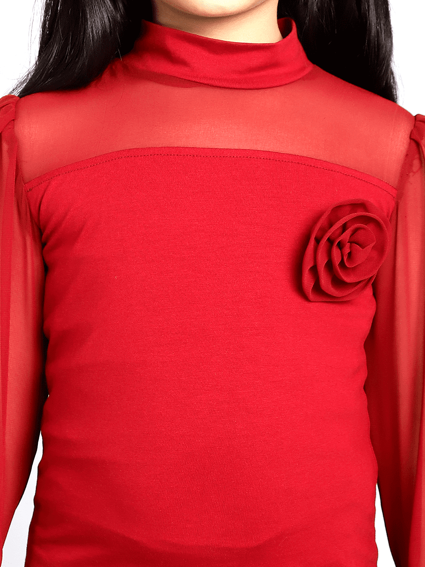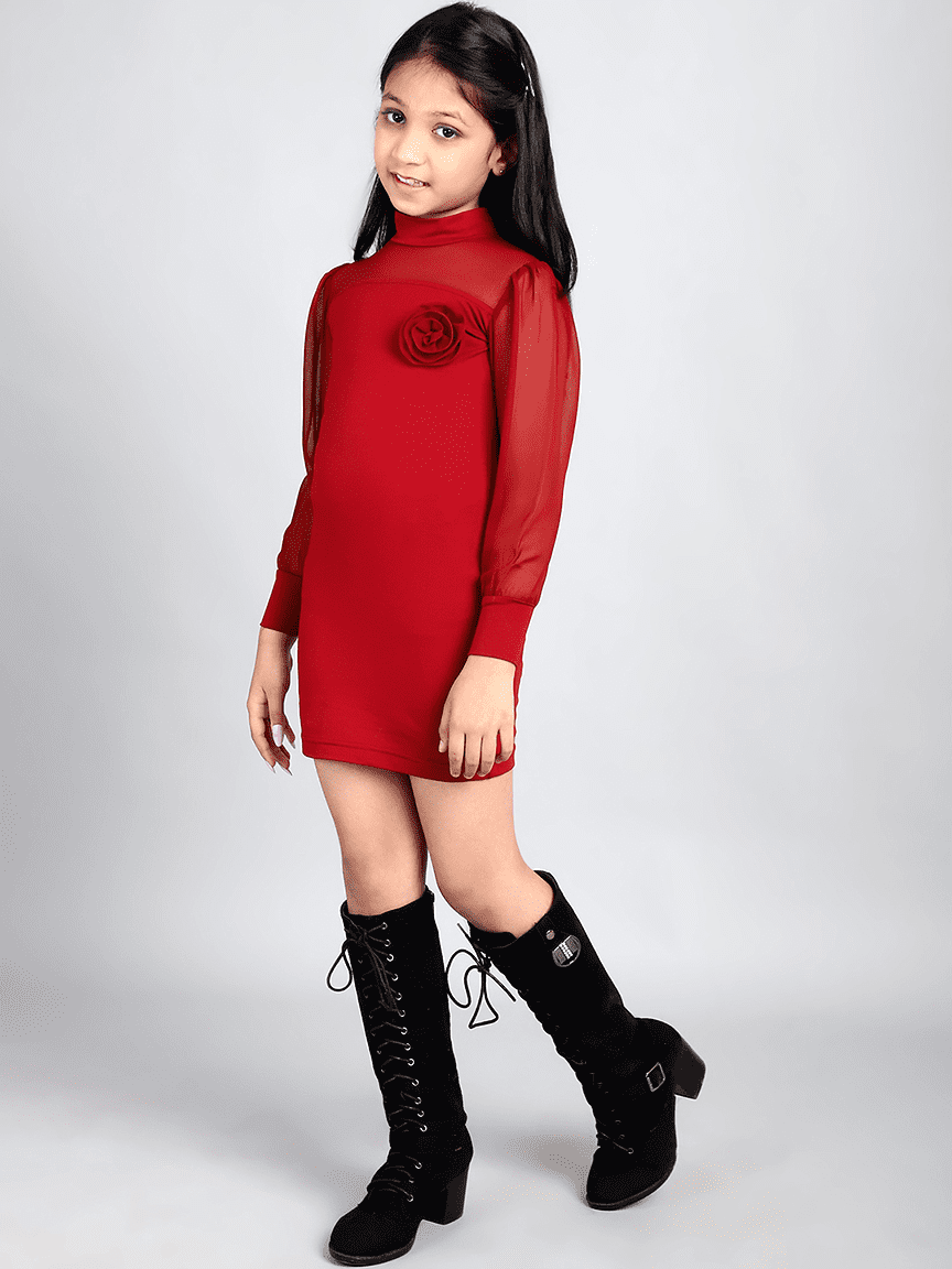 Baawri Girl Maroon Solid Color Long Sleeve Round Dress