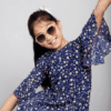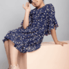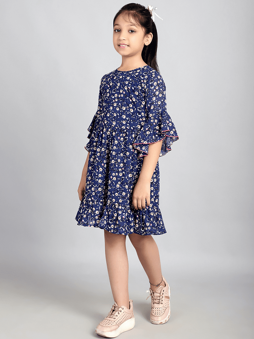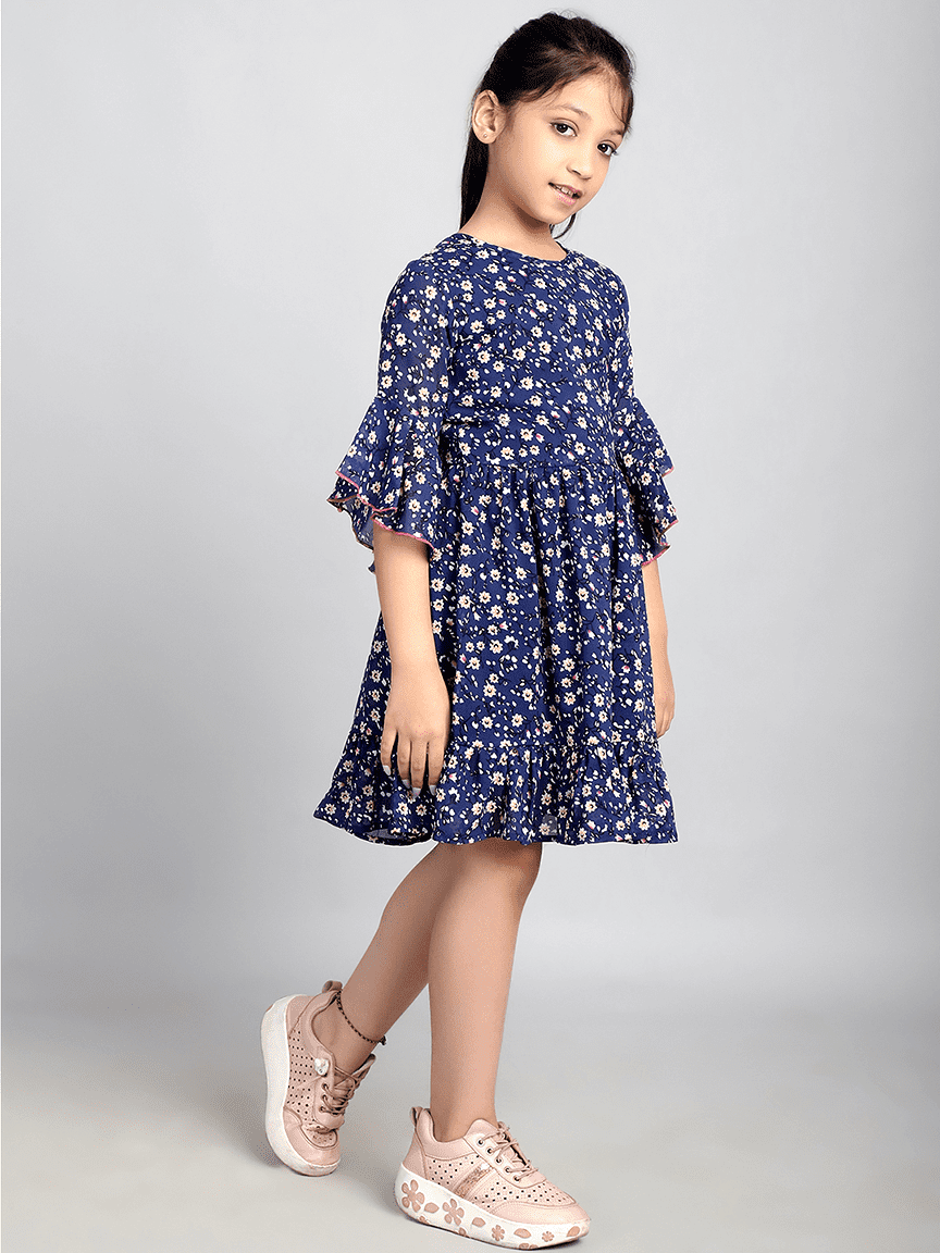 Baawri Girl Navy Blue Printed Color Georgette Knee Length Dress
