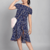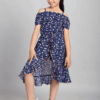 Baawri Girl Navy Blue Printed Georgette Knee Length Jumpsuite