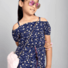 This Jumpsuite is a fashionable and practical choice for girls, featuring a Navy color, printed georgette fabric, knee-length silhouette, shoulder straps, short sleeves, and a jumpsuit style. It offers a blend of comfort, style, and ease of wear, suitable for various occasions.