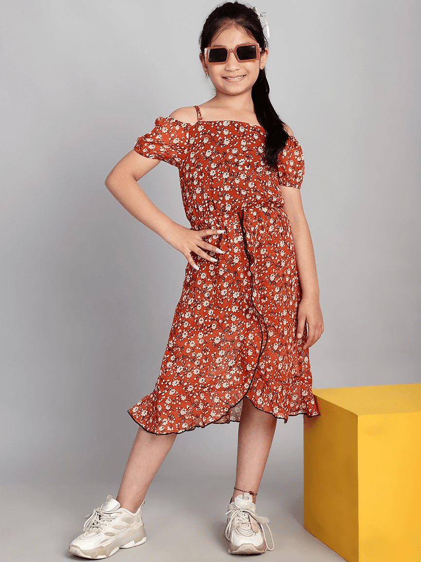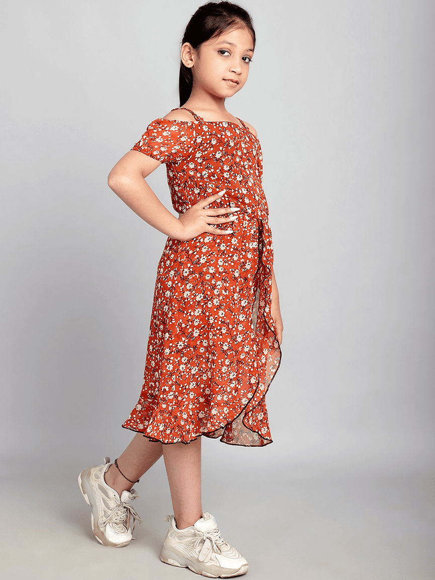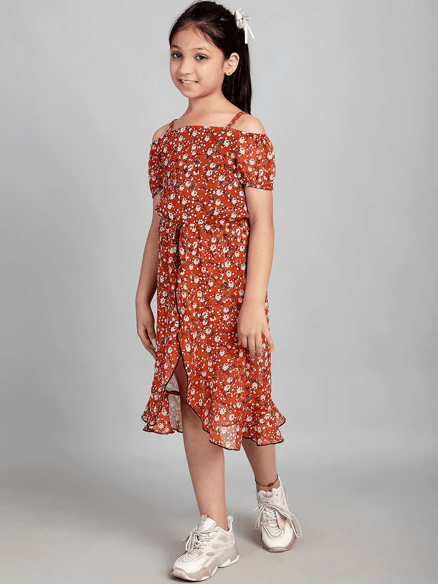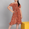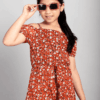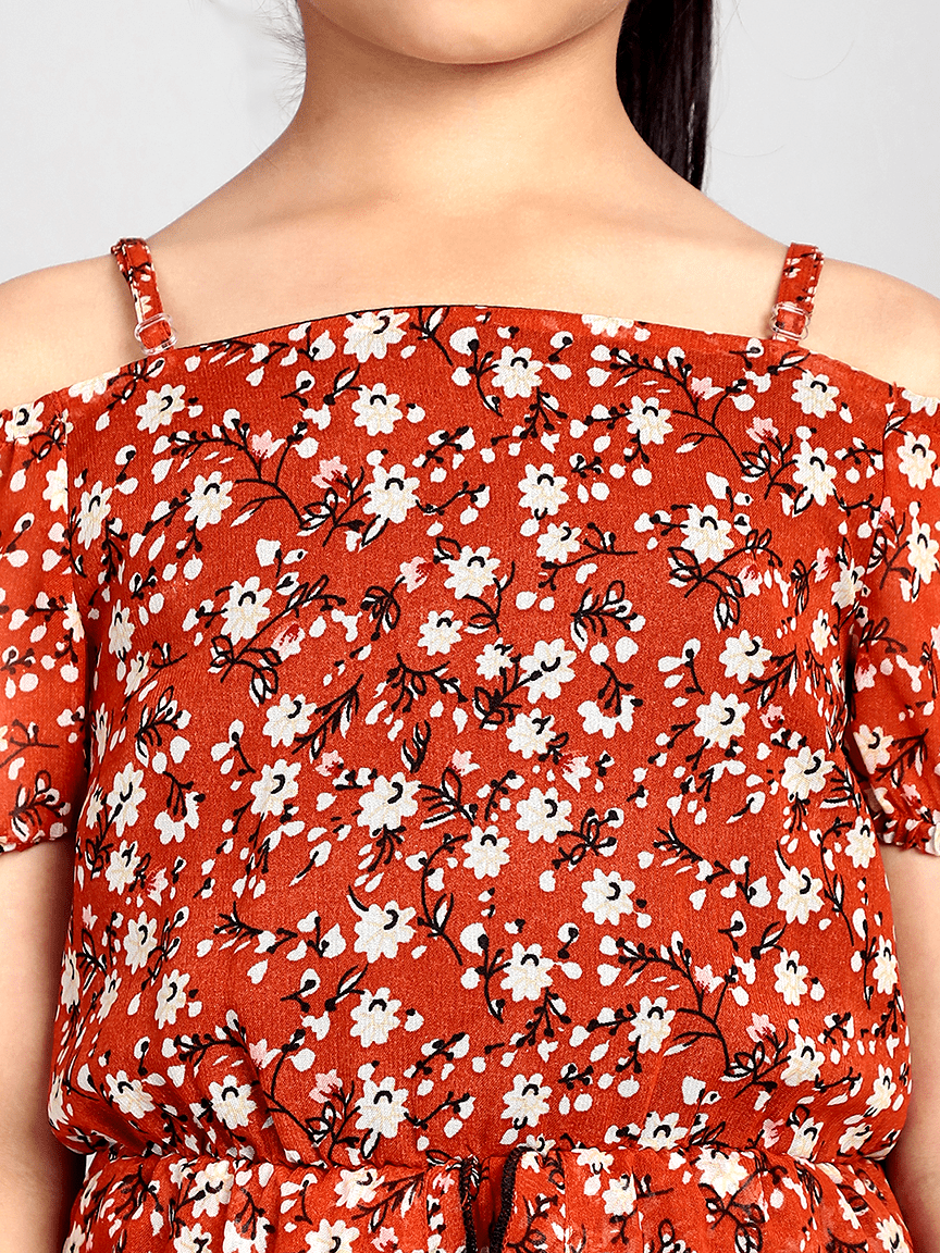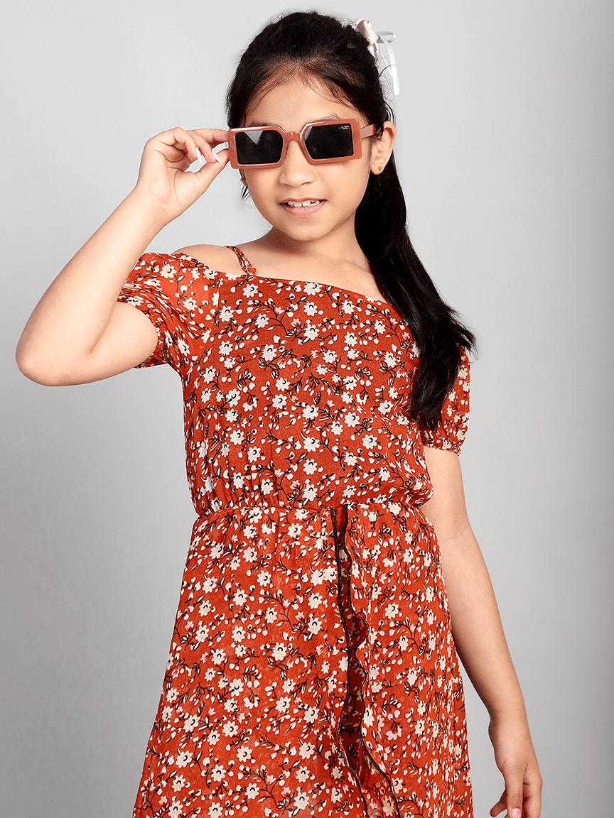 Baawri Girl Rust Printed Georgette Knee Length Jumpsuite