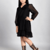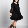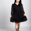 Baawri Girl Solid Black Color Georgette Knee Length Dress