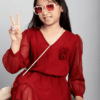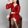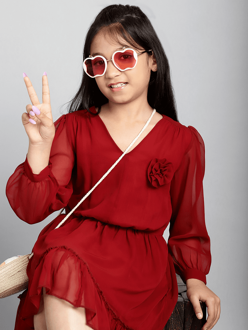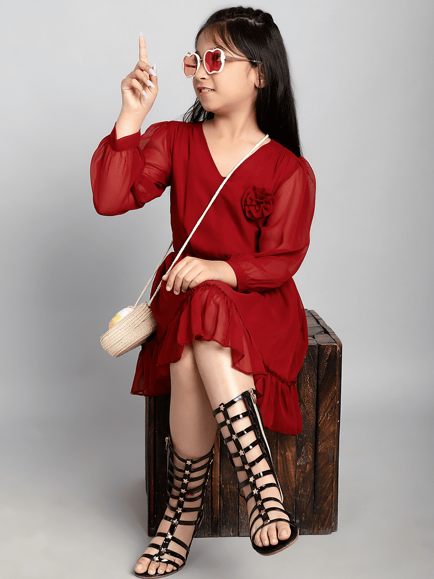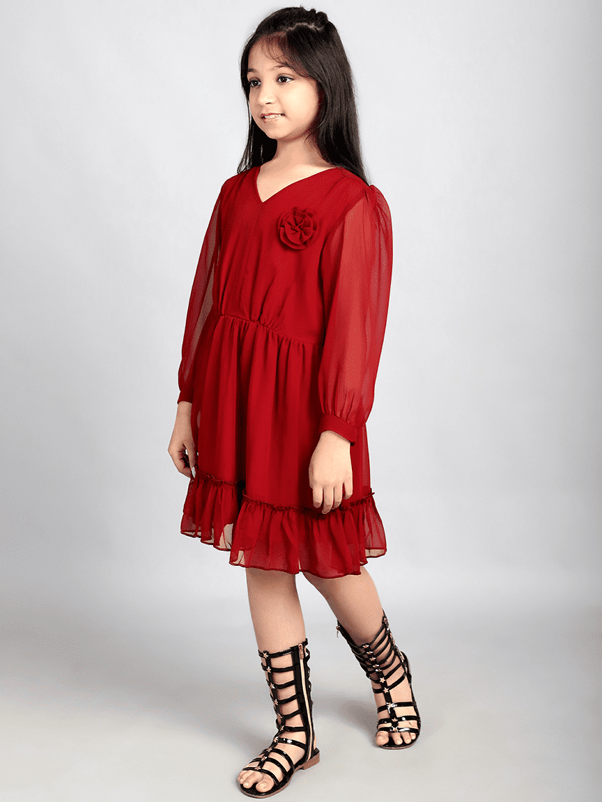 Baawri Girl Solid Maroon Color Georgette Knee Length Dress
