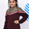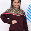 BaawRi Girl Wine Fleece Hoodie Sweatshirt with Animal Print & Tape Detailing | Winter Wear for Girls
