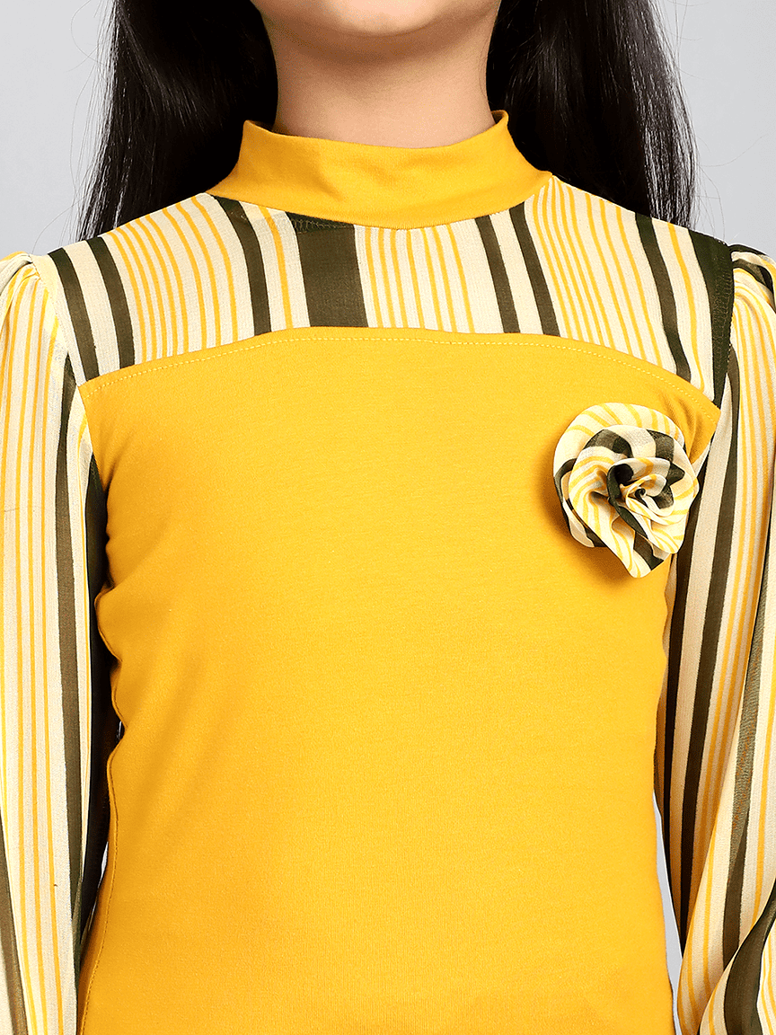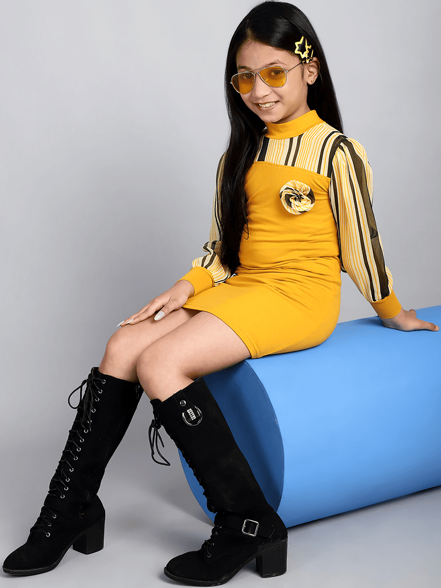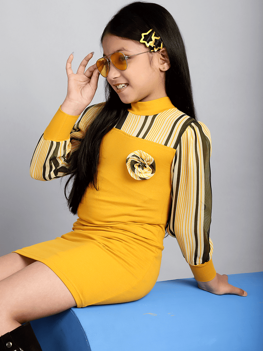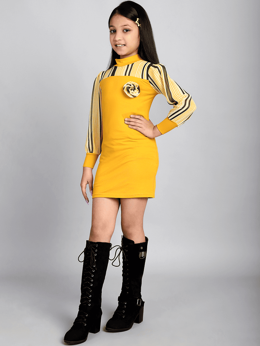 Baawri Girl Yellow Color Long Sleeve Round Dress