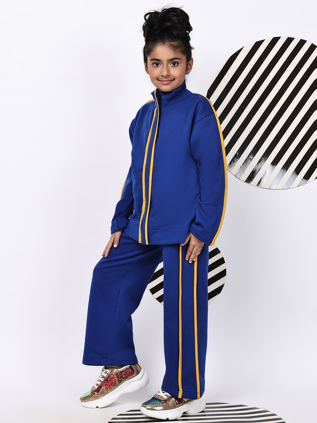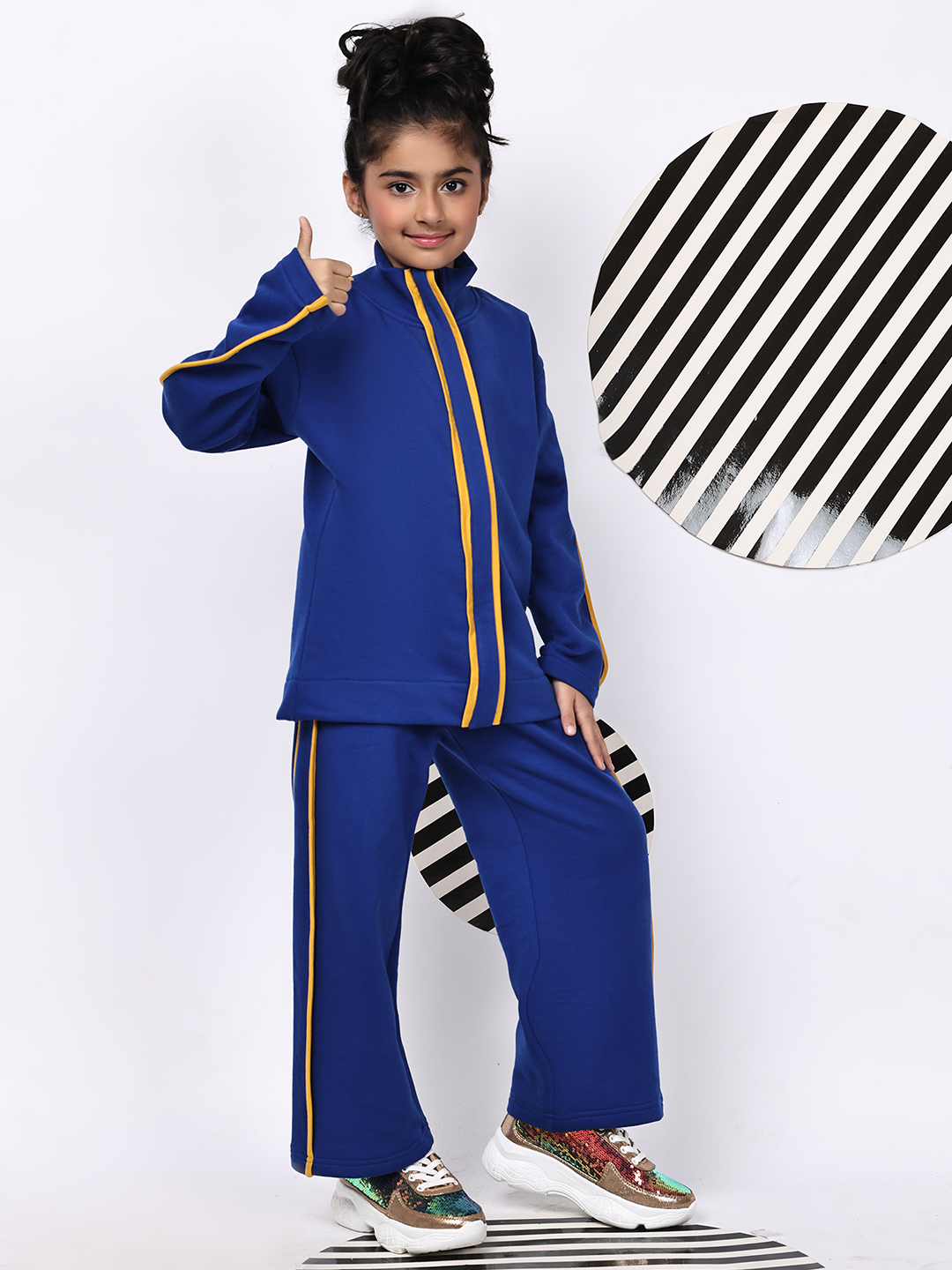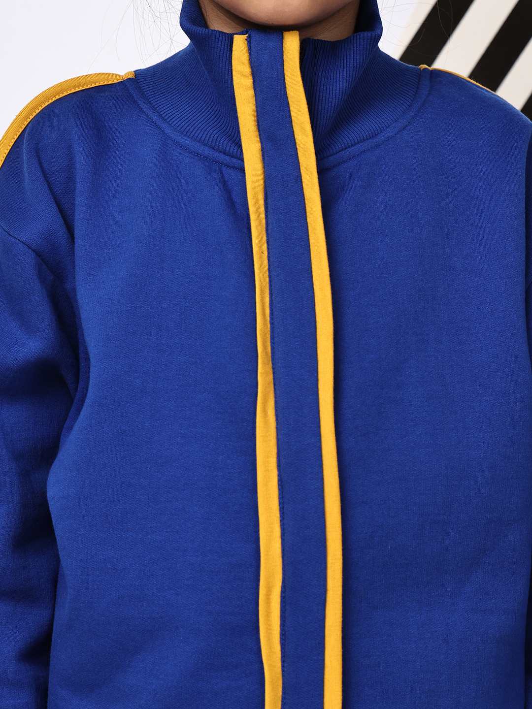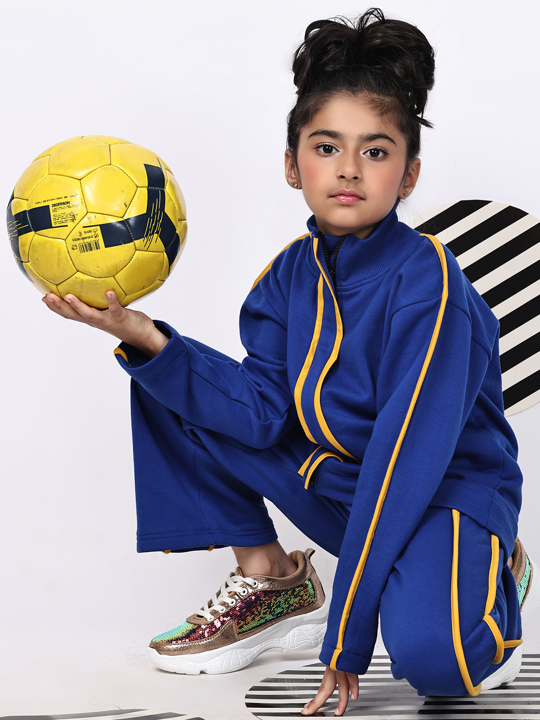 BaawRi Girls Fleece Tracksuit Set – Princess Blue Jacket & Pants with Yellow Piping | Soft Winter Warm Sweatshirt & Joggers Co-ord Set