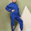 BaawRi girls’ fleece co-ord set in vibrant princess blue. Made from ultra-soft fleece fabric, the set includes a cozy sweatshirt with a lemon print on the shoulder and matching jogger pants featuring the same cheerful motif at the bottom. Designed for comfort, warmth, and playful charm, it’s the perfect choice for outings, playdates, or cozy days at home.