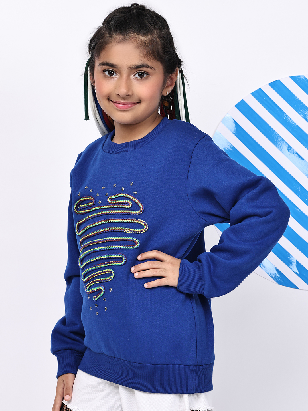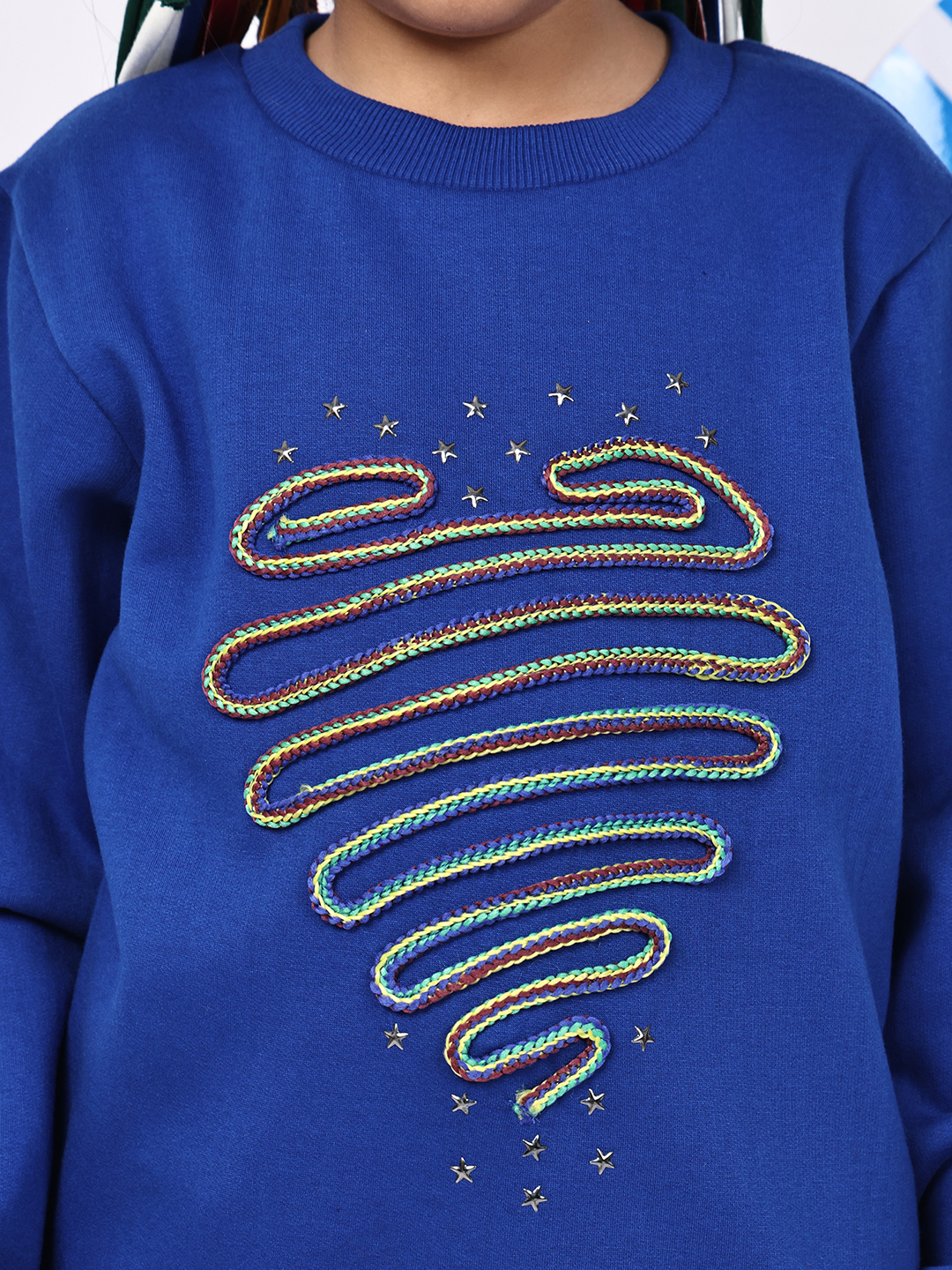 BaawRi Girls Princess Blue Fleece Sweatshirt with Multicolour Heart-Snake Detailing | Soft Warm Winter Pullover for Kids | Cute Cozy Sweatshirt for School, Playdates & Festive Outings
