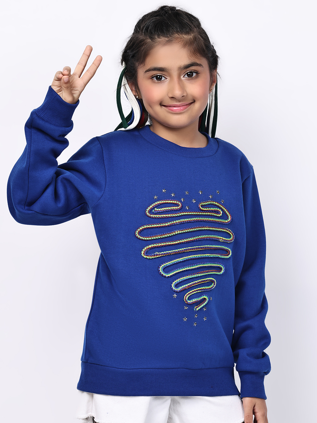 • 🎨 Vibrant Heart-Snake Motif: Unique multicolour heart-snake detailing gives a bold, artistic twist to the classic fleece sweatshirt — a trendy design she’ll love to wear.