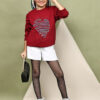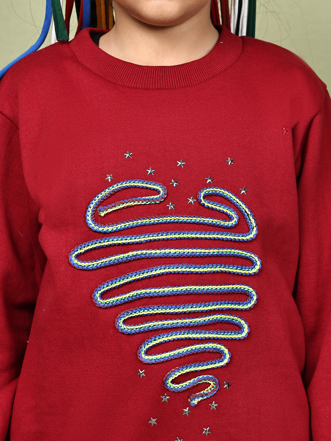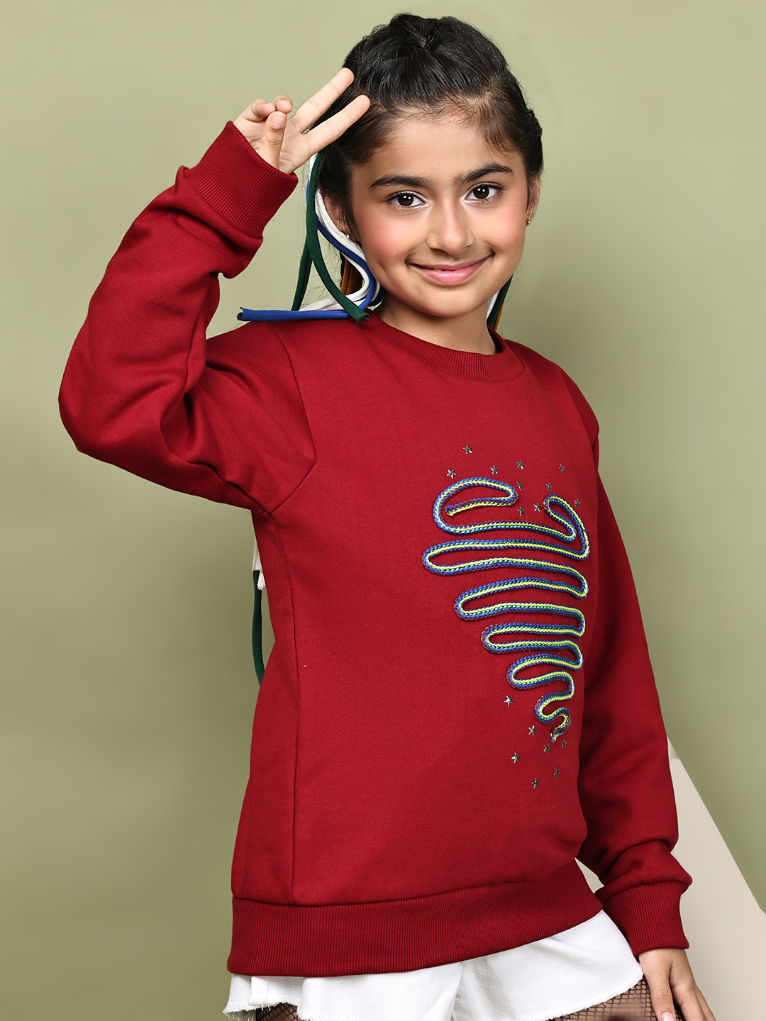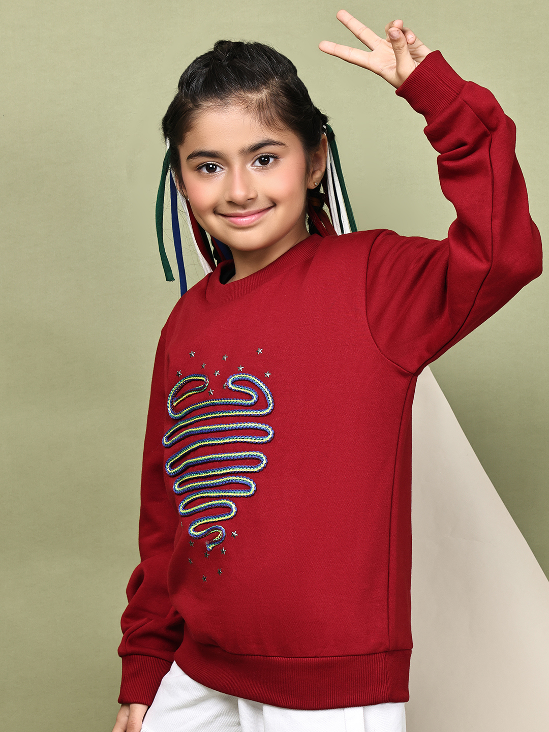 BaawRi Girls Red Fleece Sweatshirt with Multicolour Heart Snake Detailing