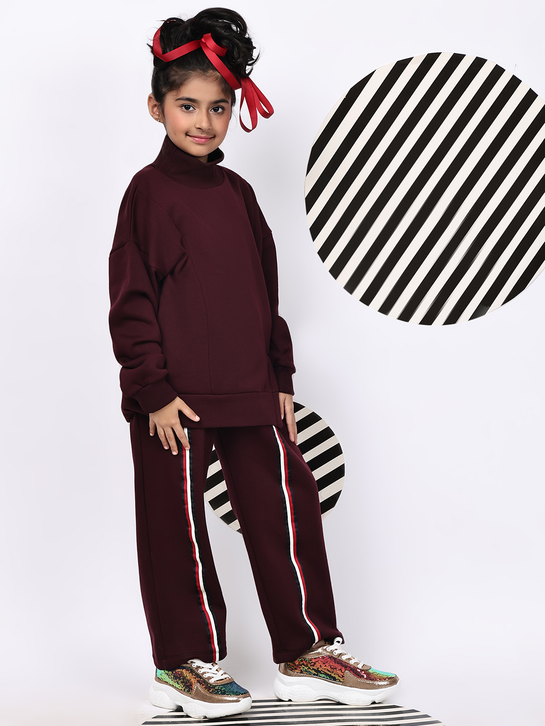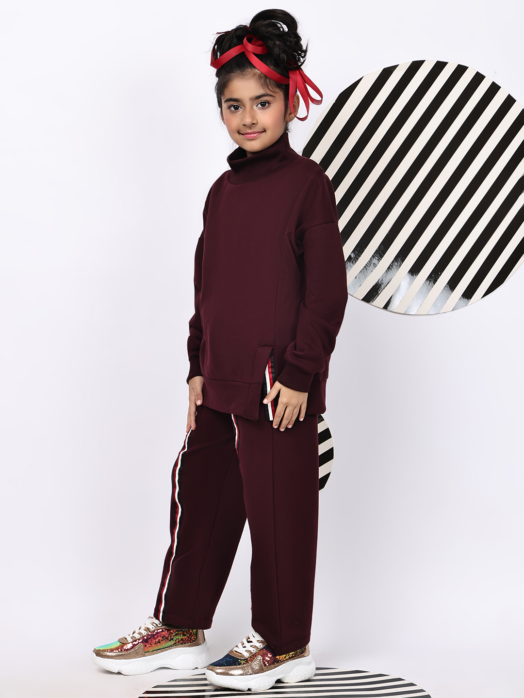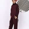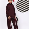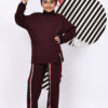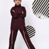 BaawRi Girls’ Wine Fleece Co-Ord Set | Long Top with Side Front Split & Tape Detailing | Pocketed Pants with Tapes | Winter Casual Tracksuit Outfit