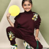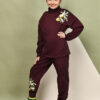 BaawRi girls fleece co-ord set in vibrant Wine. Made from ultra-soft fleece fabric, the set includes a cozy sweatshirt with a lemon print on the shoulder and matching jogger pants featuring the same cheerful motif at the bottom. Designed for comfort, warmth, and playful charm, it’s the perfect choice for outings, playdates, or cozy days at home.