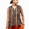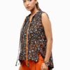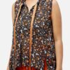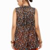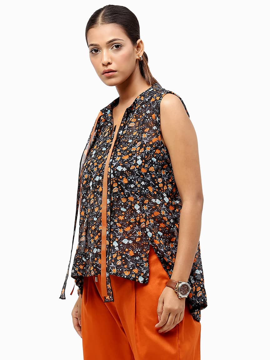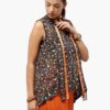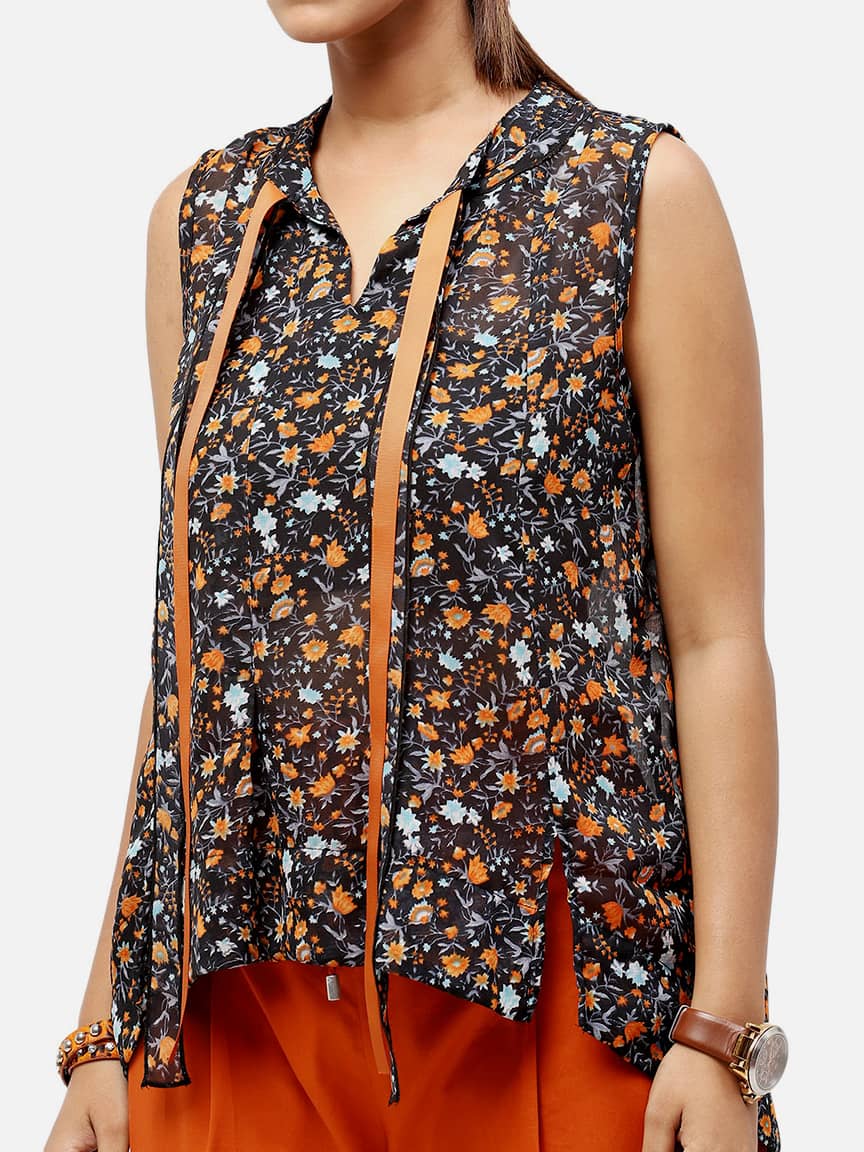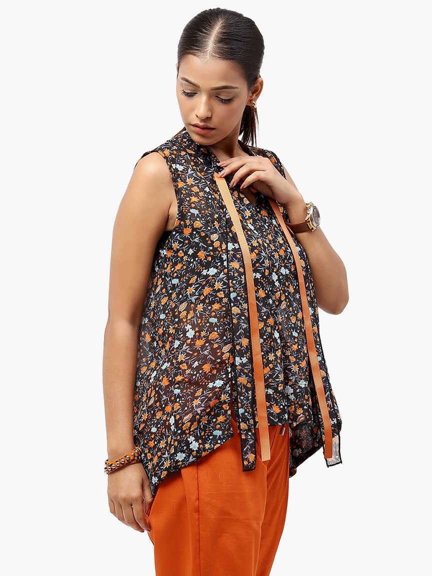 BaawRi Women’s Black Floral Printed Top, has around neck, sleeveless and high low hem.