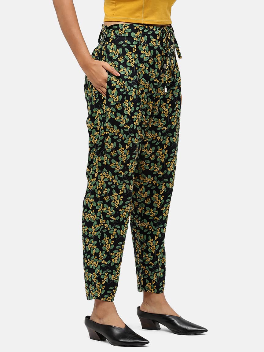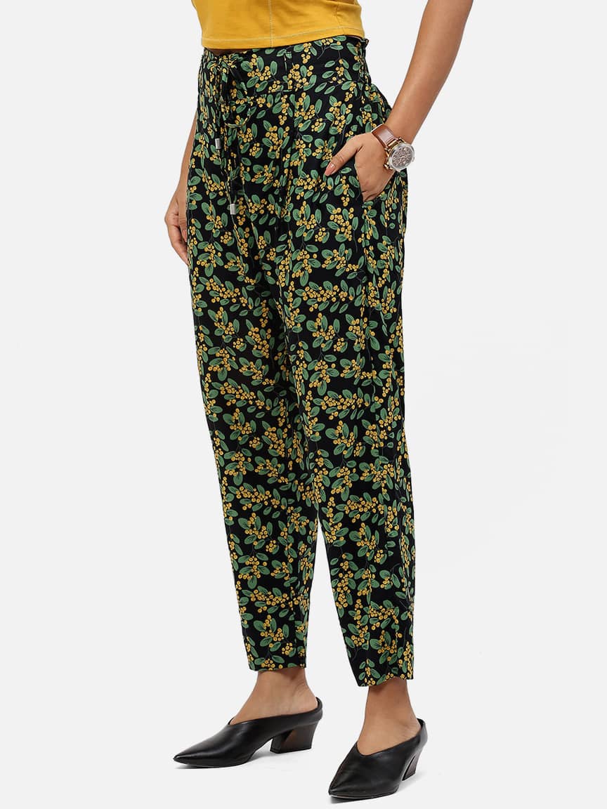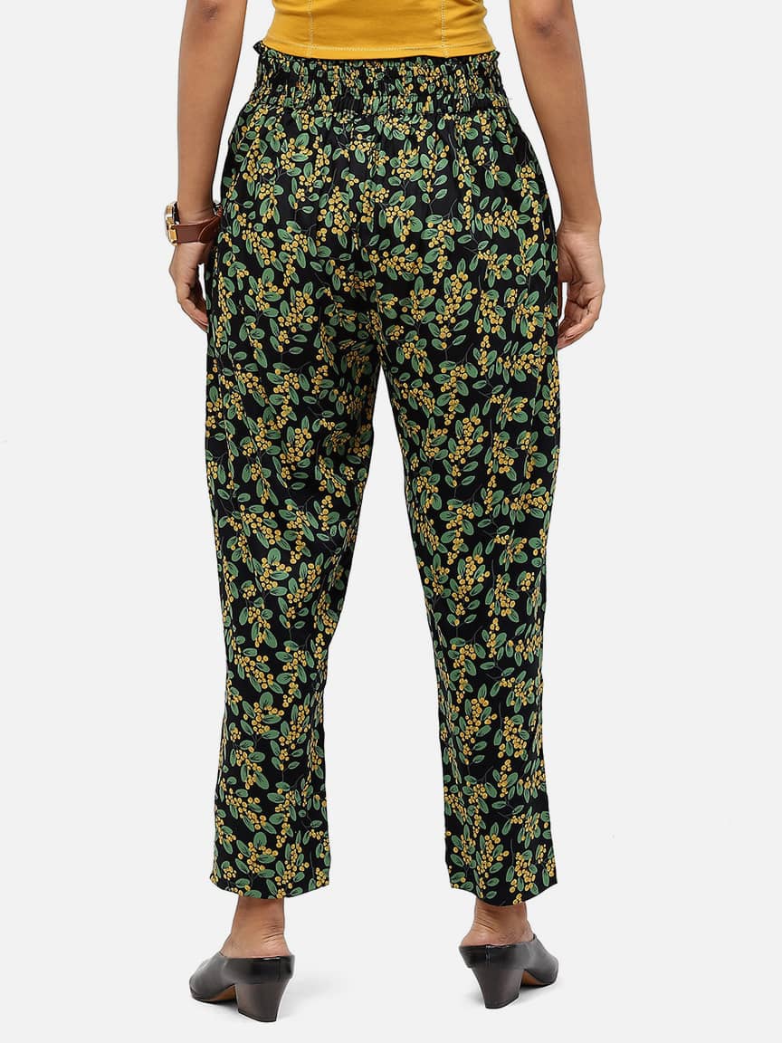 BaawRi Women’s Green Floral Print Viscose Rayon Trouser