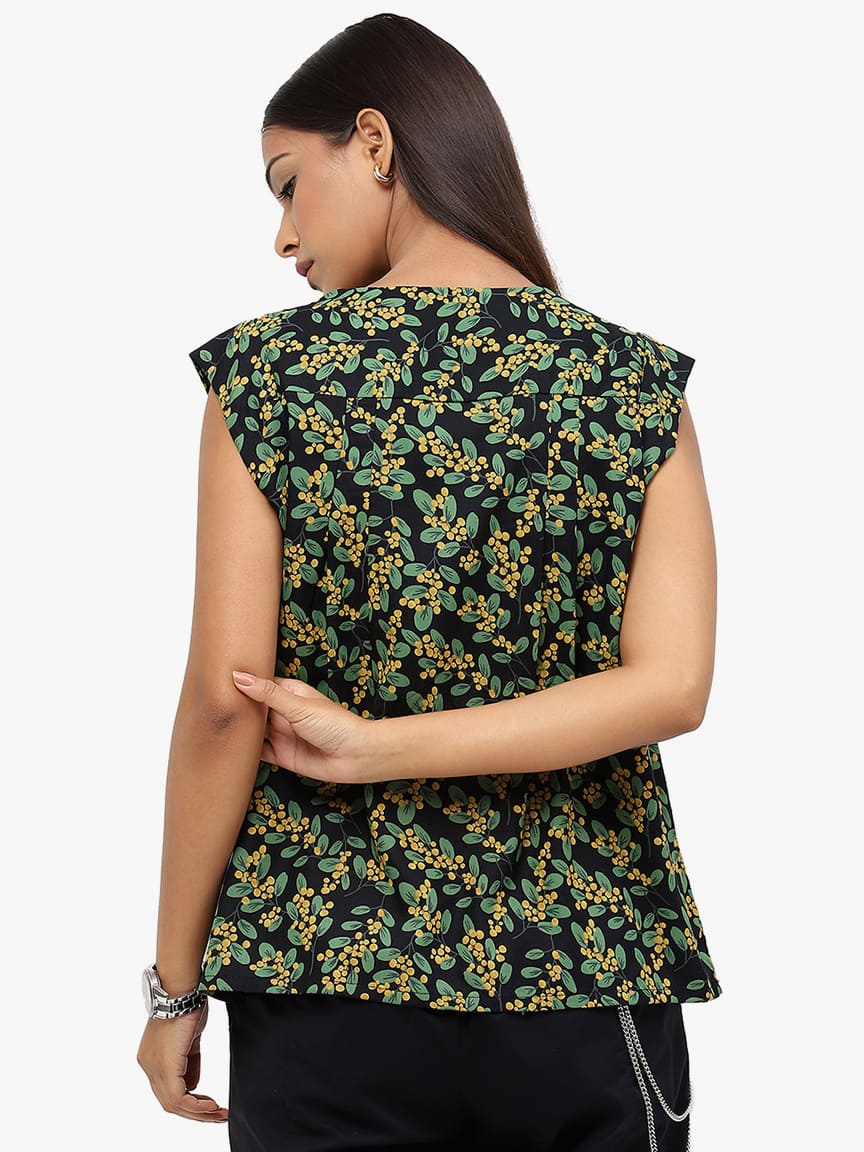 BaawRi Women's Green Floral Printed Viscose Rayon Top