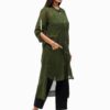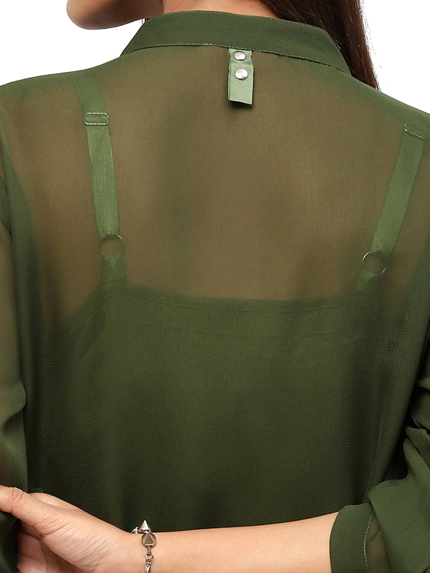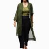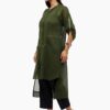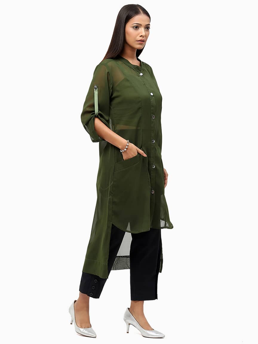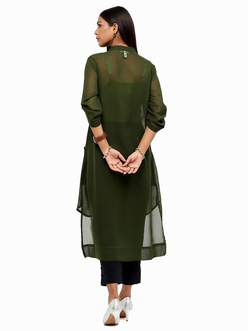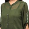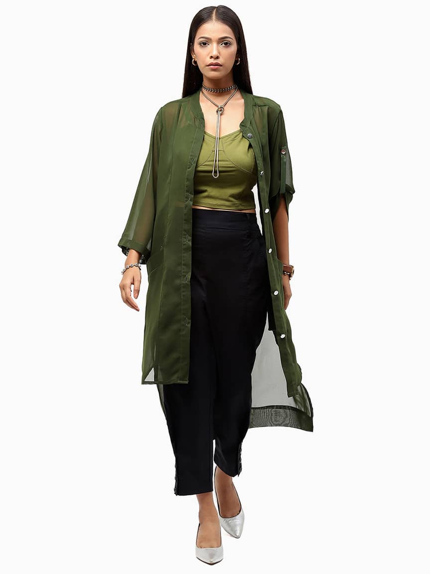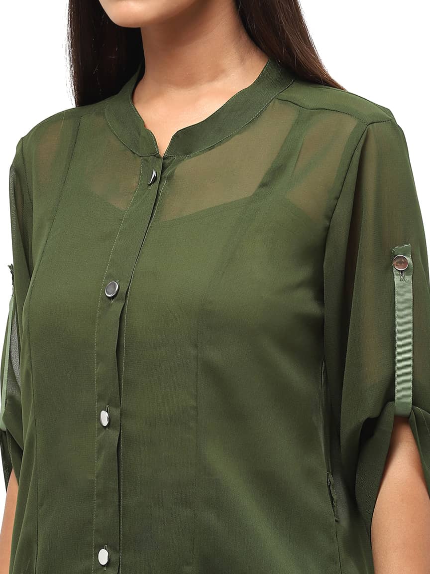 BaawRi Women’s Green Solid Color Mandrian Collar Shrug,has a long sleeves, Front open, knee lenght and Button Closures.