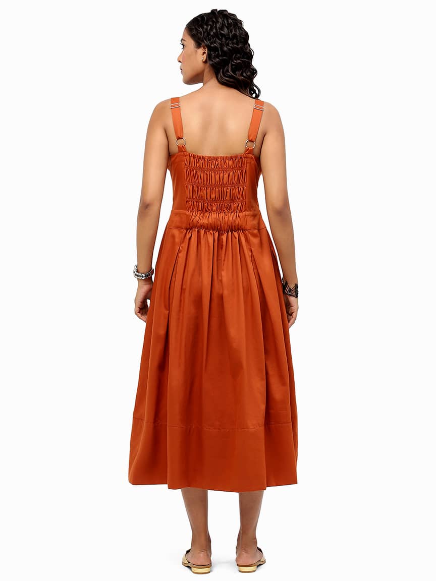 BaawRi Women’s Orange Solid Color Cotton Dress