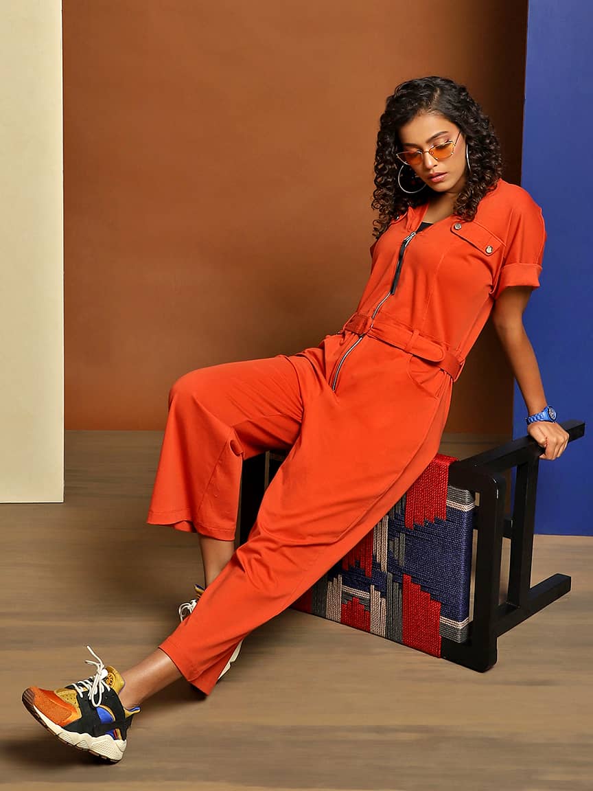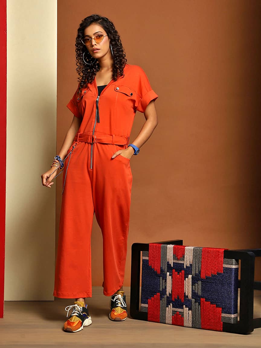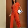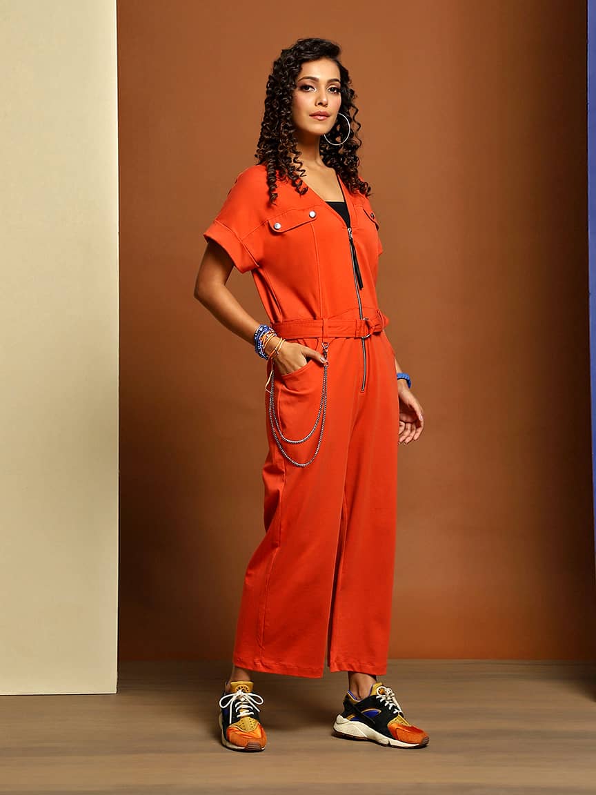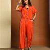 • Folded Sleeves: The chic folded sleeves add a modern and relaxed touch to the jumpsuit, enhancing its overall appeal.