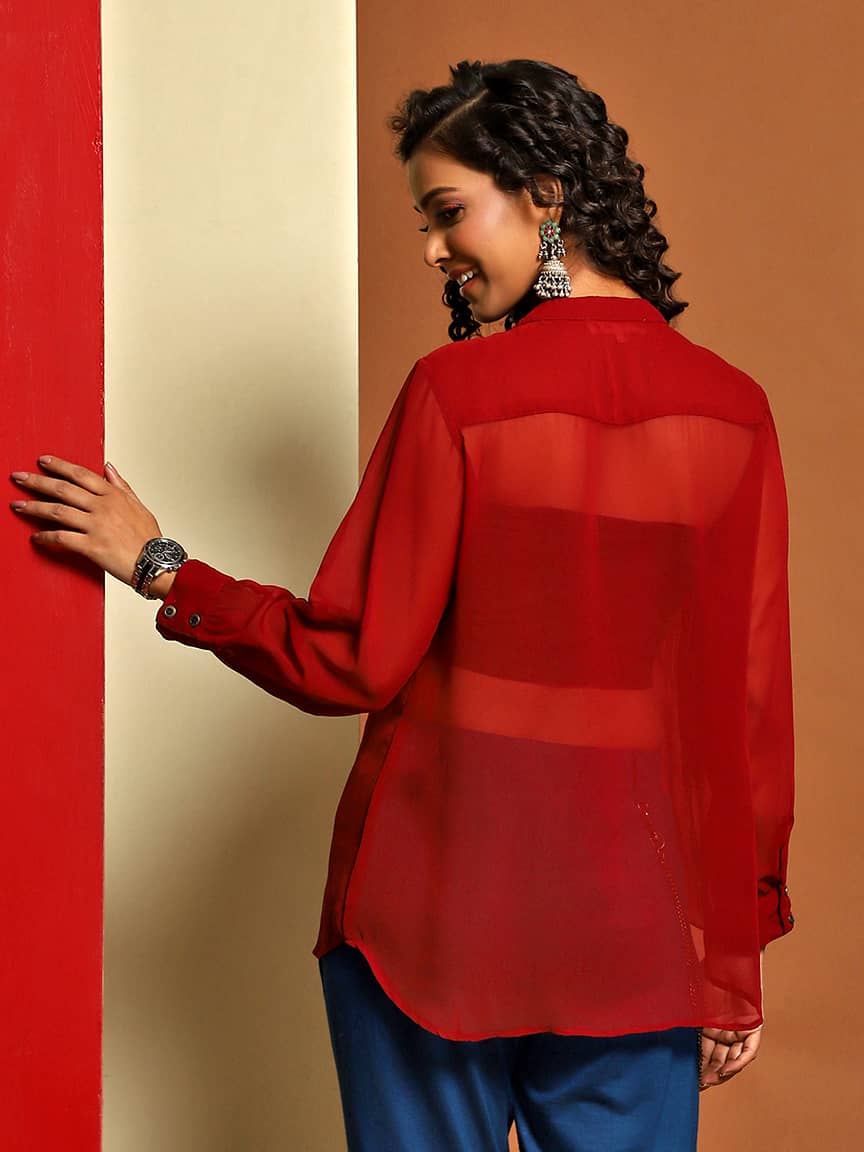 • Translucent Georgette Fabric: Lightweight and airy, this top is crafted from translucent georgette for an effortlessly elegant look.