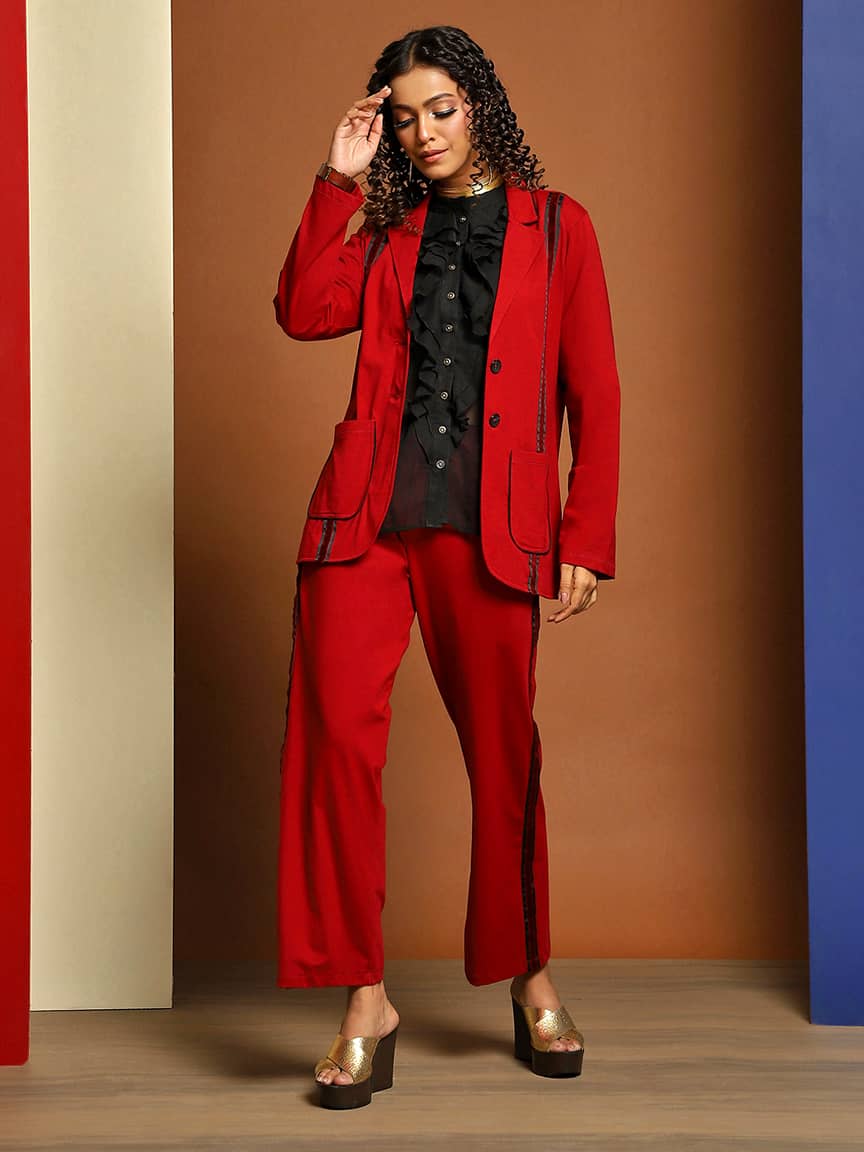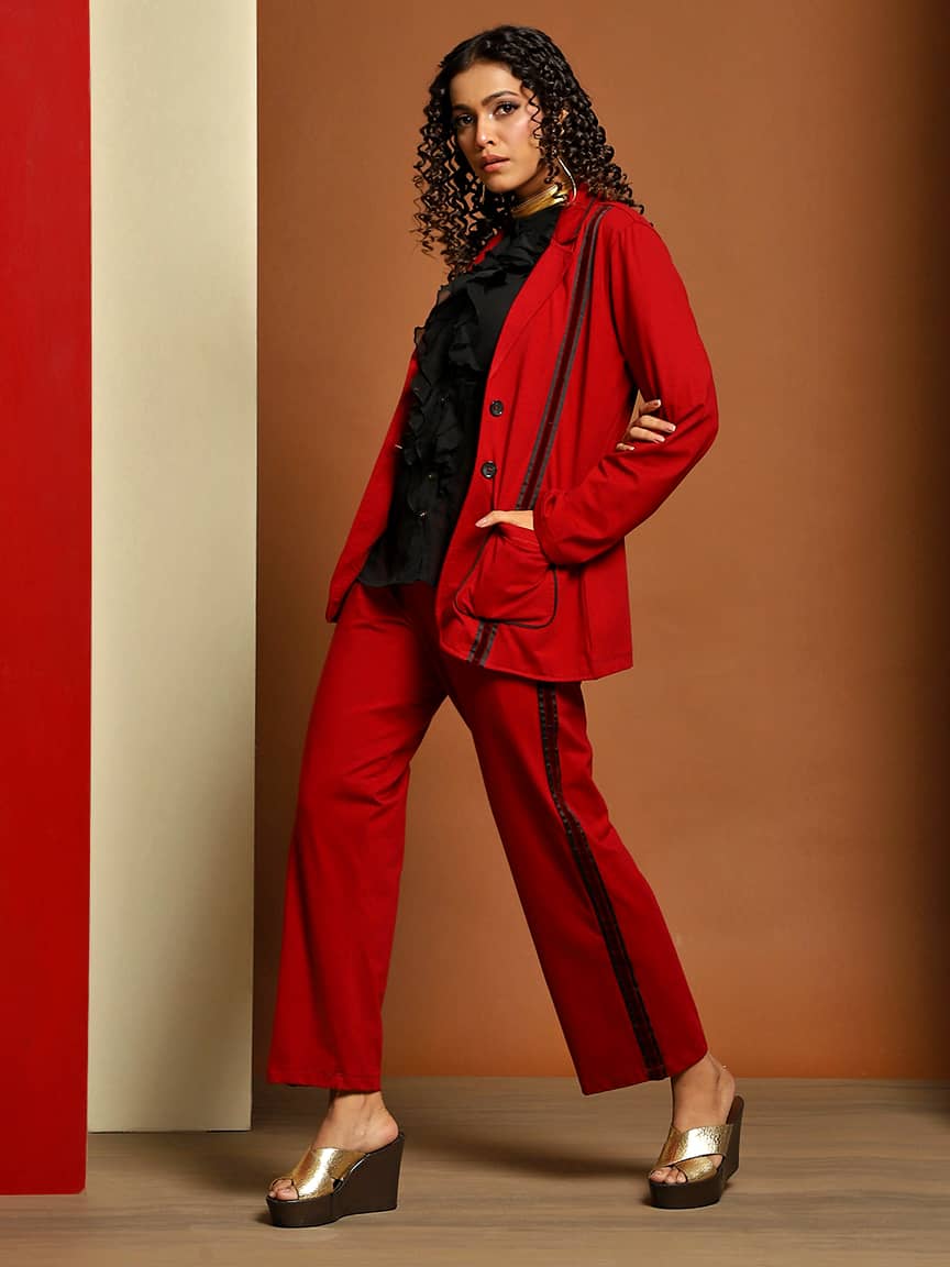 • Indulge in the timeless charm and contemporary flair of our Cotton Lycra Tailored Jacket Set. Perfect for making a statement, this ensemble seamlessly combines style and comfort. Make a lasting impression”