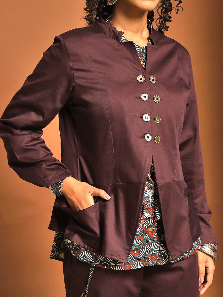 Elegant Stand Collar Jacket Set in Cotton Satin