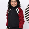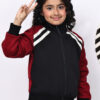 Girls’ Fleece Zipper Jacket | Black & Red Contrast with Tape & Sequin Detailing | Cozy Winter Sweatshirt with Pockets