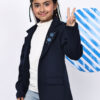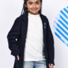 Girls Navy Fleece Coat – Soft Winter Jacket with Floral & Star Detailing on Lapel | Warm Stylish Coat with Pockets for Kids