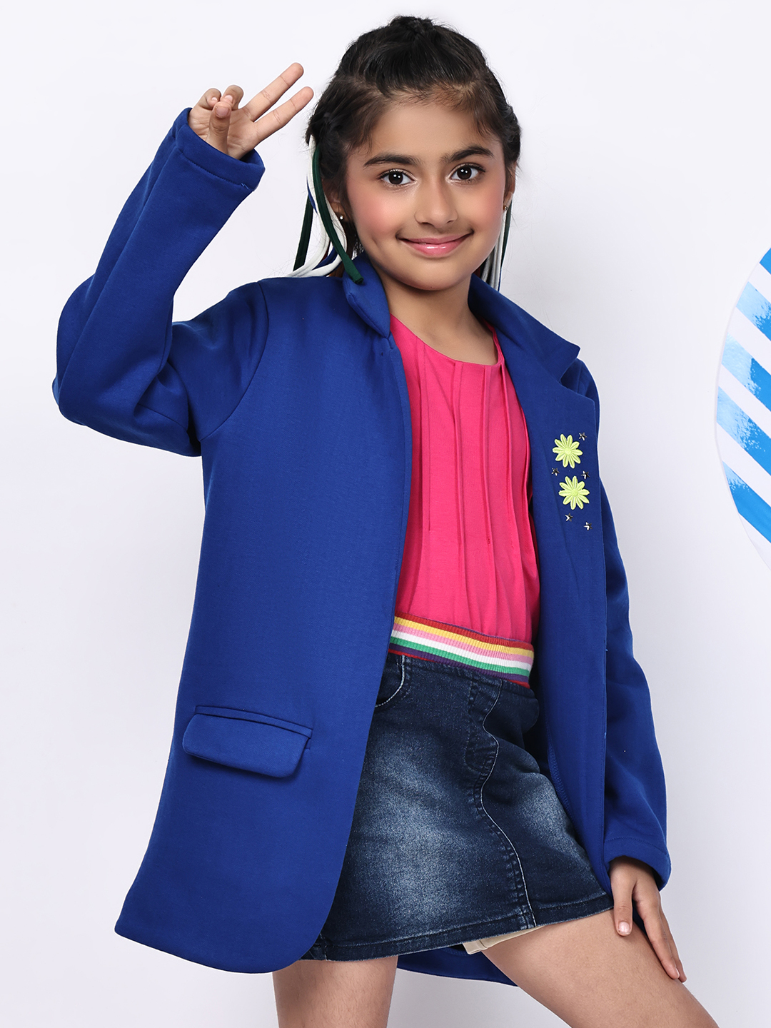 BaawRi Girls Blue Fleece Coat—a cozy yet stylish layer designed to delight. Crafted from soft fleece in a rich wine hue, this jacket features charming floral and star detailing on the lapel, bringing playful elegance to chilly days. Thoughtfully tailored with roomy pockets and a warm inner lining, it’s perfect for school mornings, festive outings, or weekend strolls. A standout piece that blends comfort, character, and seasonal charm for kids who love to shine.