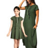 Chic Midi-Length Lycra Jersey Dress with Raw Cut Ruffles and Ribbon Detailing