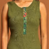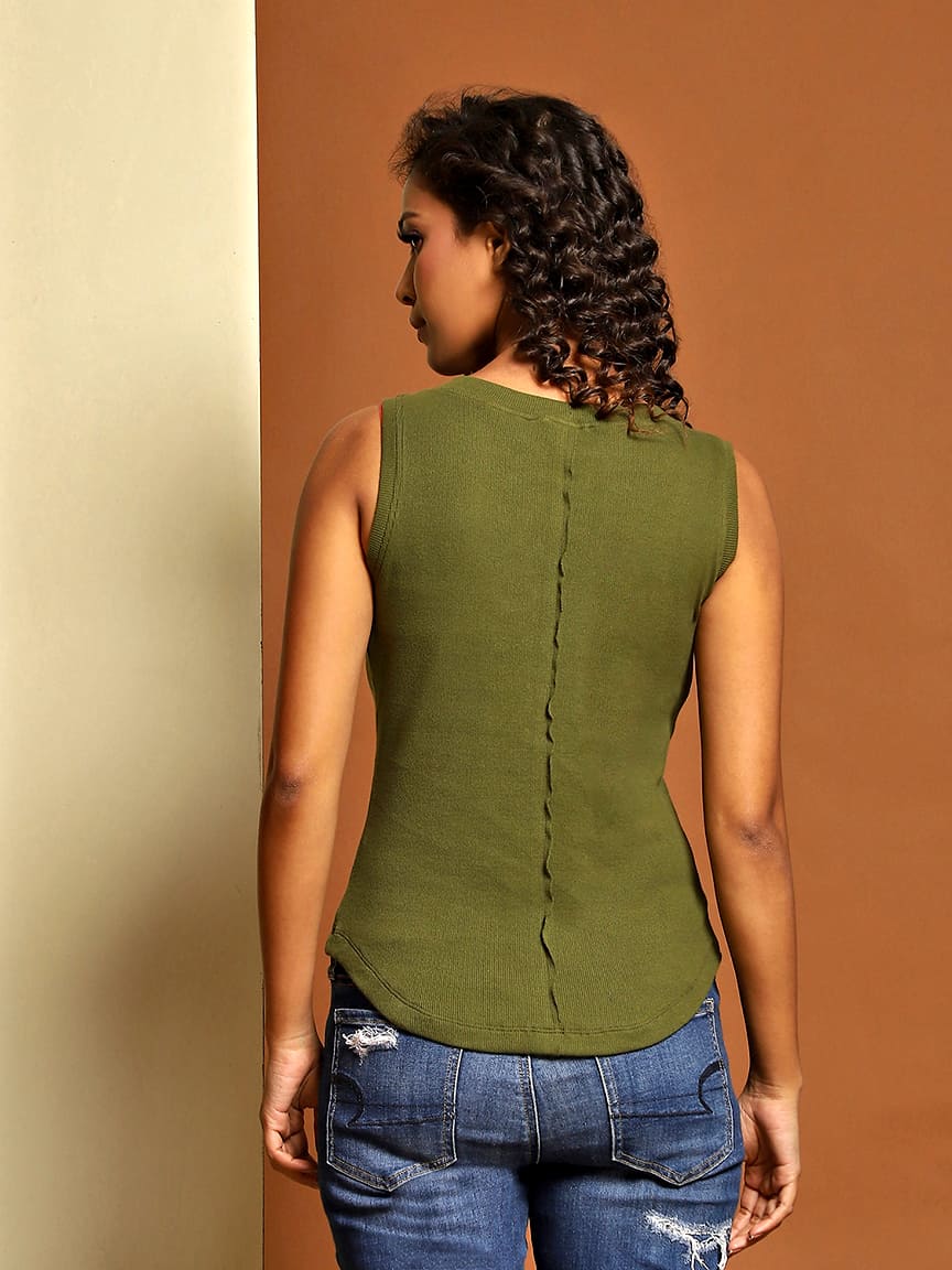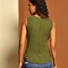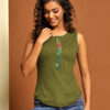 Ribbed Sleeveless Top with Print Detailing on the Button Placket