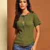 • Print Detailing: Unique and eye-catching detailing on the neck and button placket adds a touch of individuality to your look.